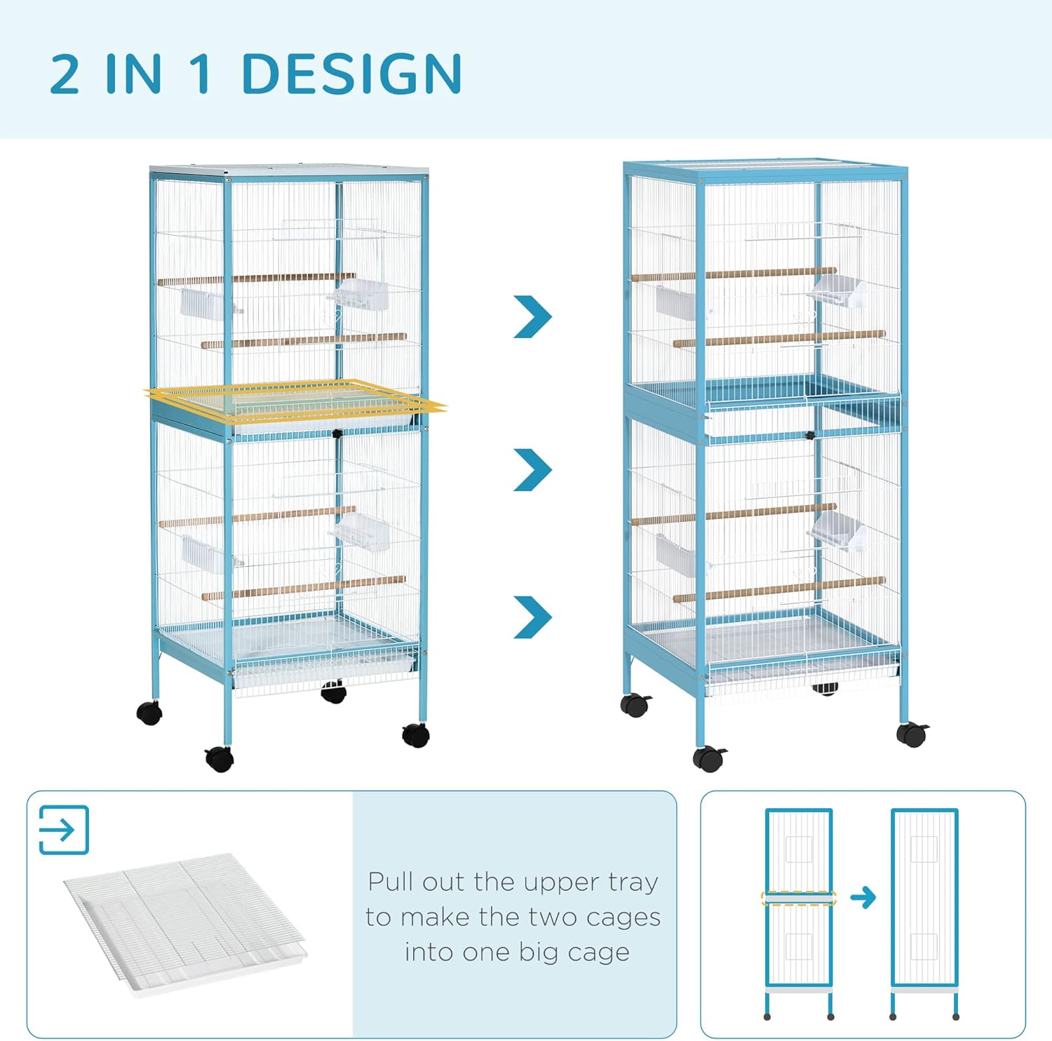 PawHut Large Bird Cage with 1.7 ft. Width for Wingspan, Bird Aviary Indoor with Multi-Door Design, Fit for a Canary, Finch, Conure, 55", Light Blue