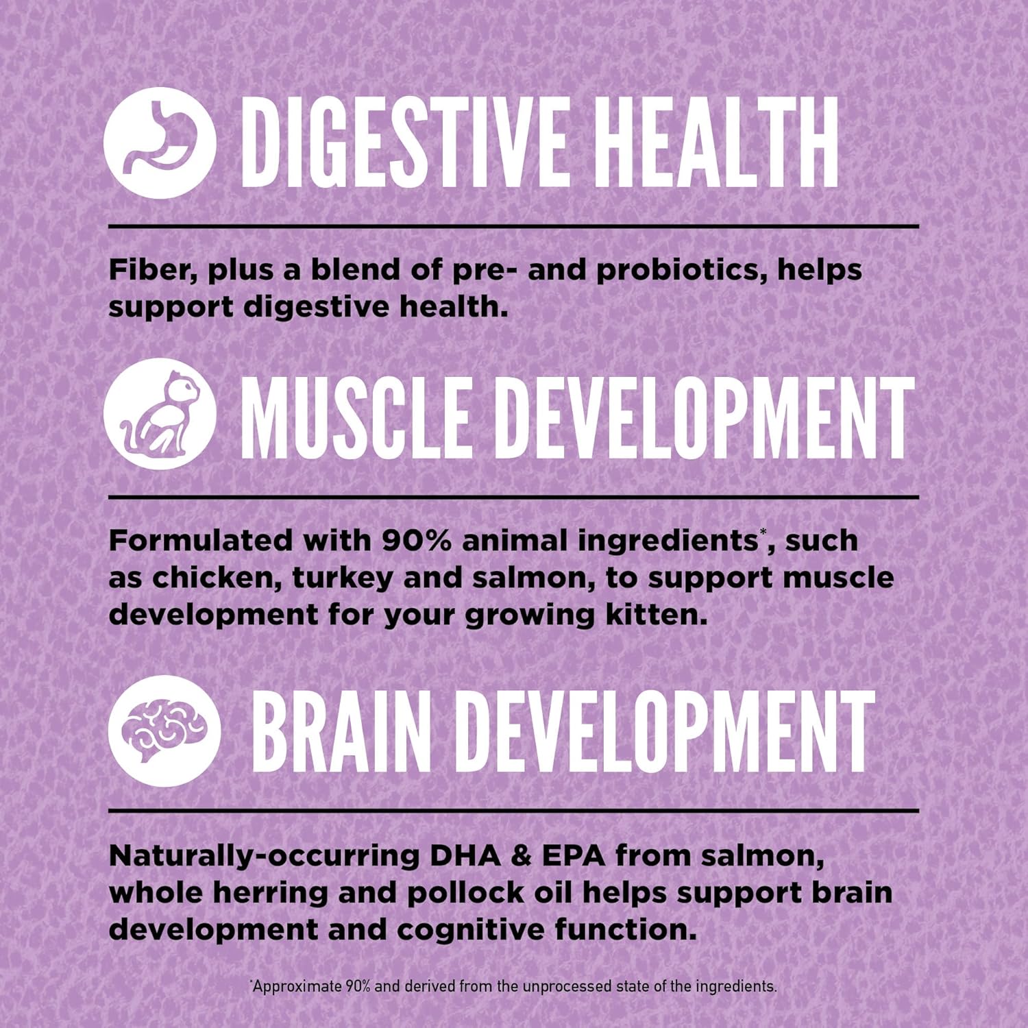 - Packed with 90 percent animal ingredients*, this high protein cat food contains the most succulent and nourishing parts of the prey to help your growing kitten thrive