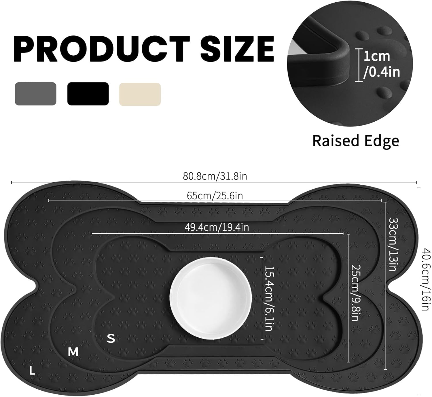 - Health Silicone Material - This pet bowl mat is non-toxic, and non-allergenic, protecting the health and safety of your pet's feeding. 31.8" x 16" holds two extra large bowls, perfect for large-sized dogs and cats to enjoy a delicious meal tray.