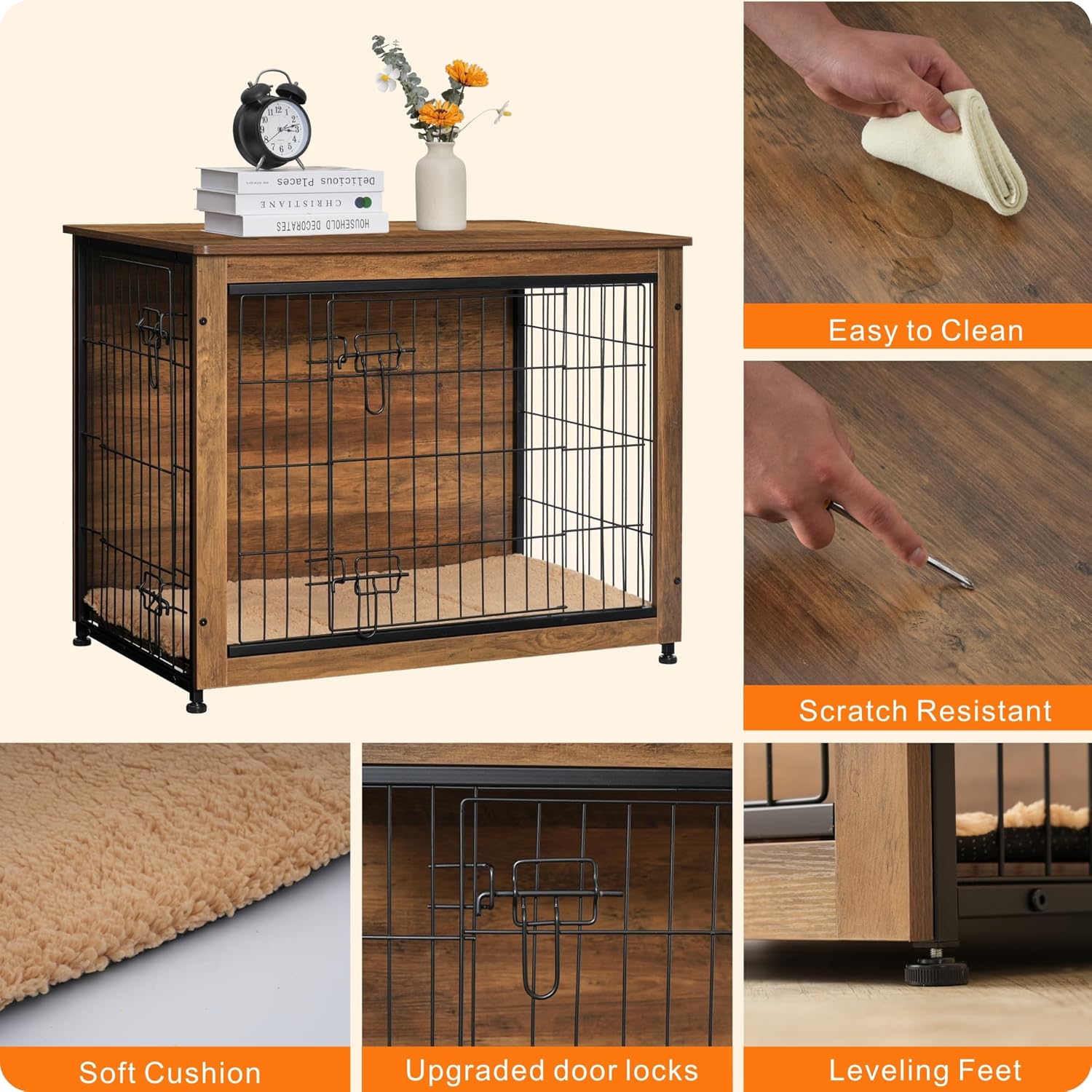 - 【Dog crate with Cushion】 Matching cushion in the crate take your dog a warm and more comfortable sleep, and also we use the wooden plate at the bottom, no pet foot jamming, more safety.