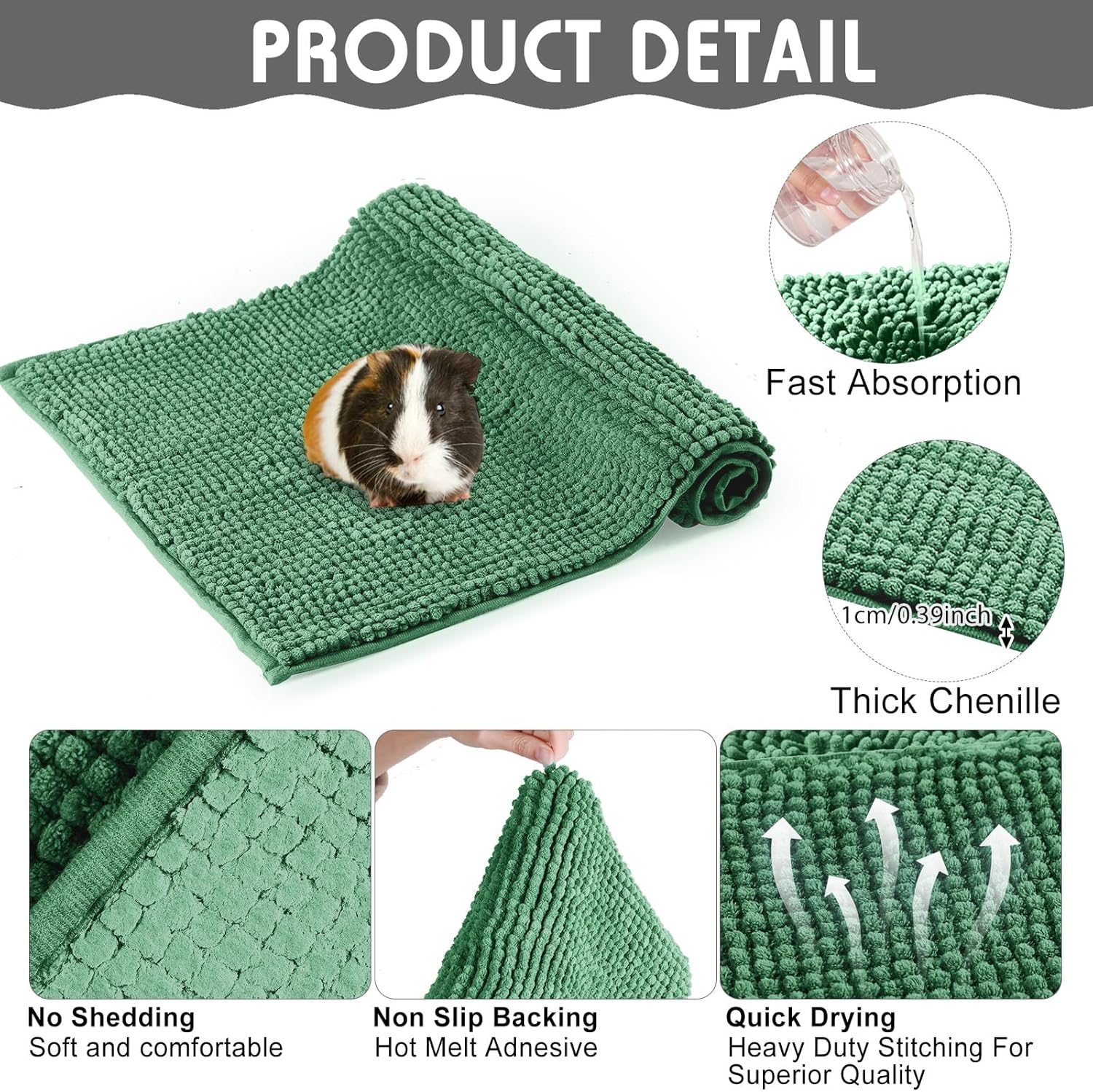 - Absorbent Material: our guinea pig pee pads washable are made of microfiber chenille material, with good density and instant water absorption, which can automatically absorb the water carried by the guinea pig and keep your small pet clean, dry and comfortable