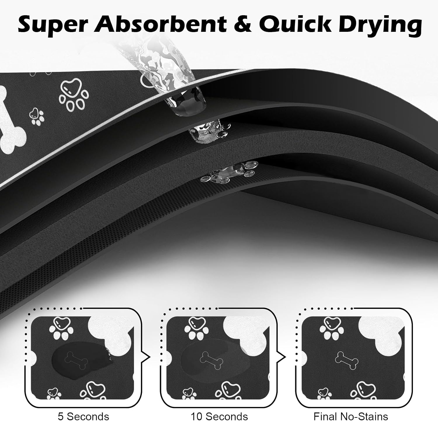 Pet Feeding Mat,Rapid Absorbent Mats for Dog Cat Food, Dog Placemat Water Bowl Mat with Rubber Backing,Messy Drinkers to Protect Floors, Pet Accessories 12"x18" Black