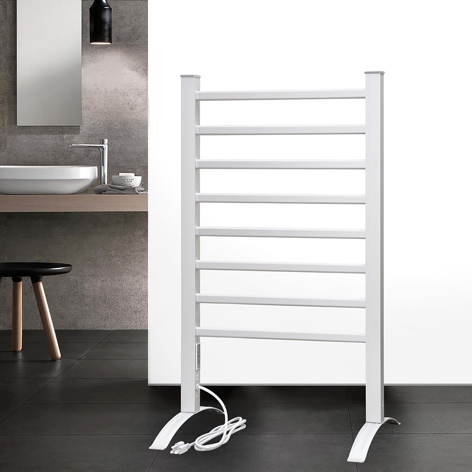- Premium Quality with Elegant Look: The bath towel warmer is made of aluminum, easy to clean and durable use. IP56 waterproof standard and wall-mounted or freestanding design maximizes your floor space.