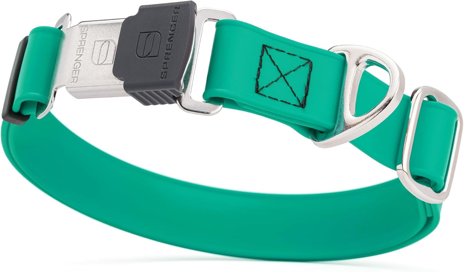 Dogline Biothane Waterproof Dog Collar with Herm Sprenger Stainless Steel Quick Release Buckle – Heavy Duty Tactical Durable Collar for Dogs – Comfortable and Safe Pet Collar, W 1" L 15-25", Teal