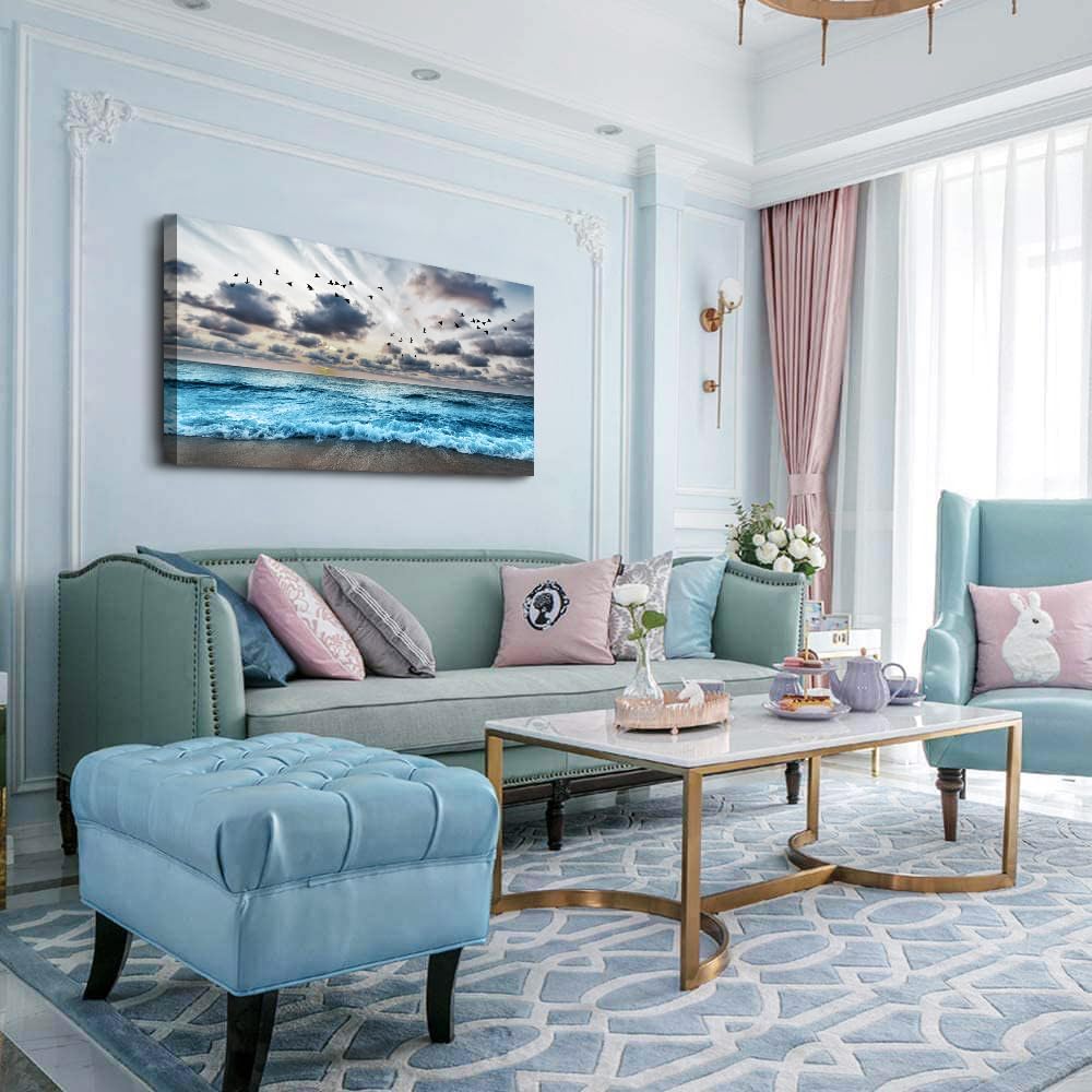 Lapremoly Black And White Beach Wall Painting Canvas Wall Art For Living Room Wall Decor For Bedroom Office Wall Decor Blue Sea Wave Pictures Artwork Modern Hotel Room Home Wall Decoration 20x40 In