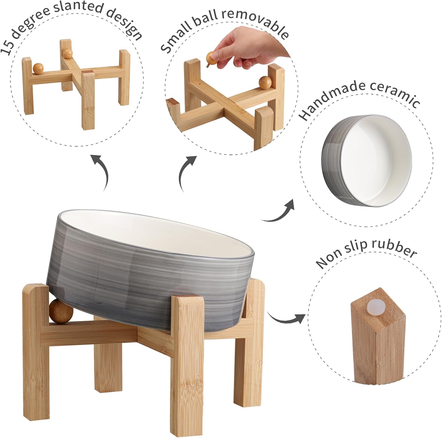 Elevated/Raised 15°Tilted Anti Slip Ceramic Dog Bowls,Slanted Bulldog Pet Food Water Feeding Dish Stand for Cats and Dogs (3.6 Cups/28 OZ) Grey White