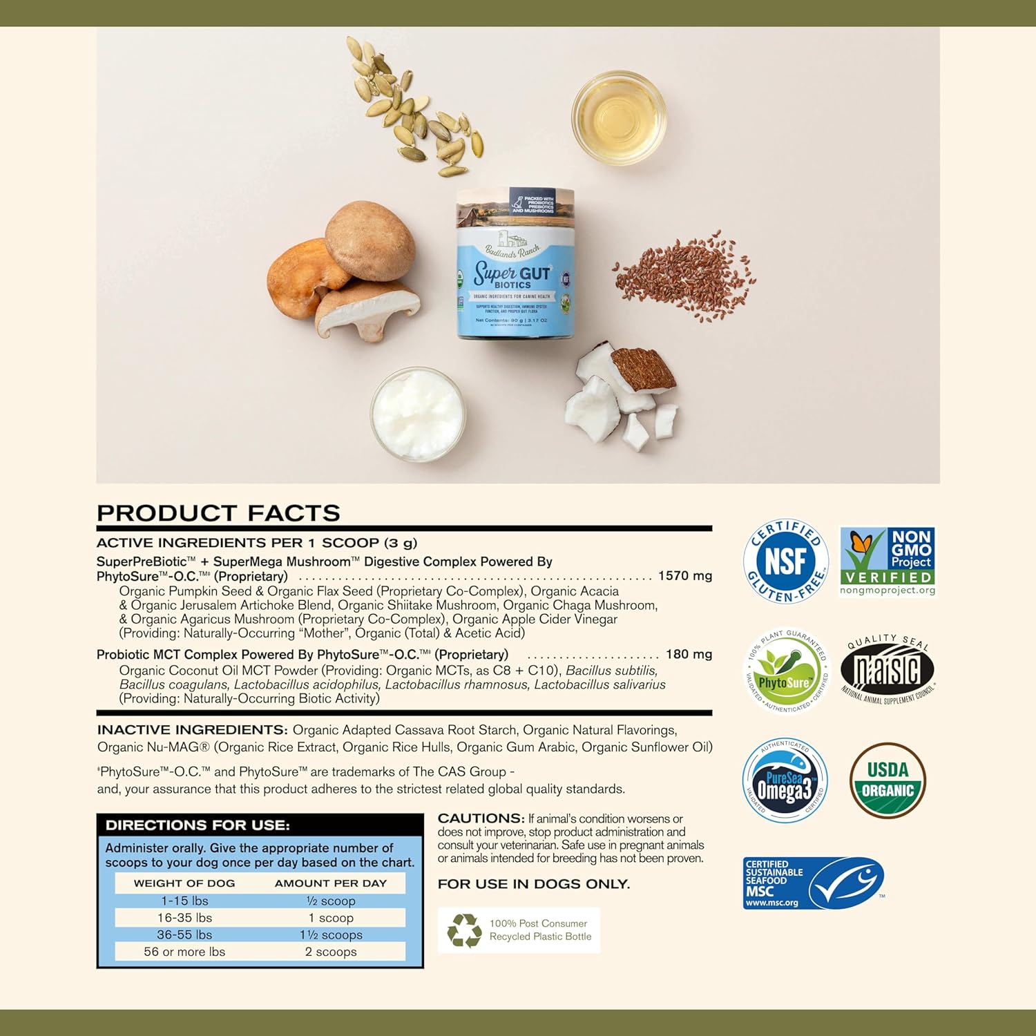 Badlands Ranch - Super Gut Biotics Canine Digestive Supplement,Probiotics, Prebiotics, Supports Healthy Digestion, Immune System Function and Gut Flora by Katherine Heigl (30 Scoops)