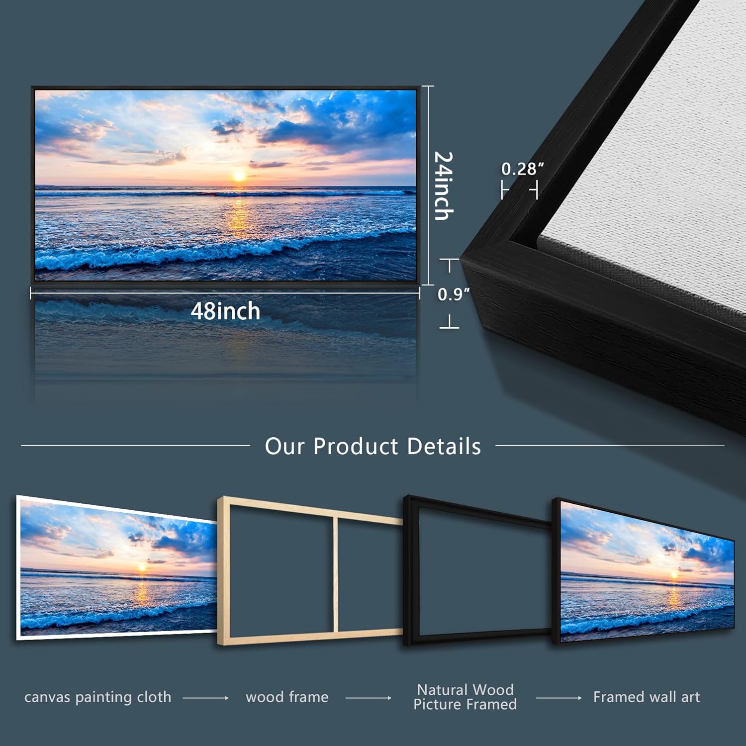 - 【FRAMED WALL ART SIZE】Size Is :24x48inch (60x120cm)(Including The Outer Frame).Wall Decor Art Black Frame Wall Art.
