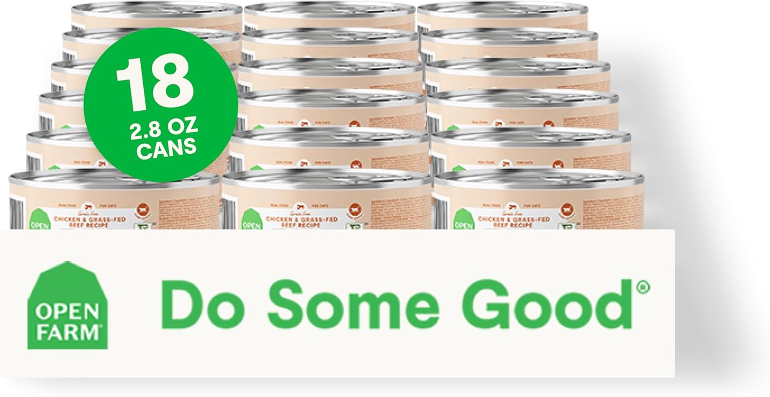 Open Farm Canned Cat Food, Paté for Complete & Balanced Nutrition, Grain-Free and Legume-Free Wet Cat Food, Chicken & Beef Recipe, 2.8oz Cans (Case of 18)