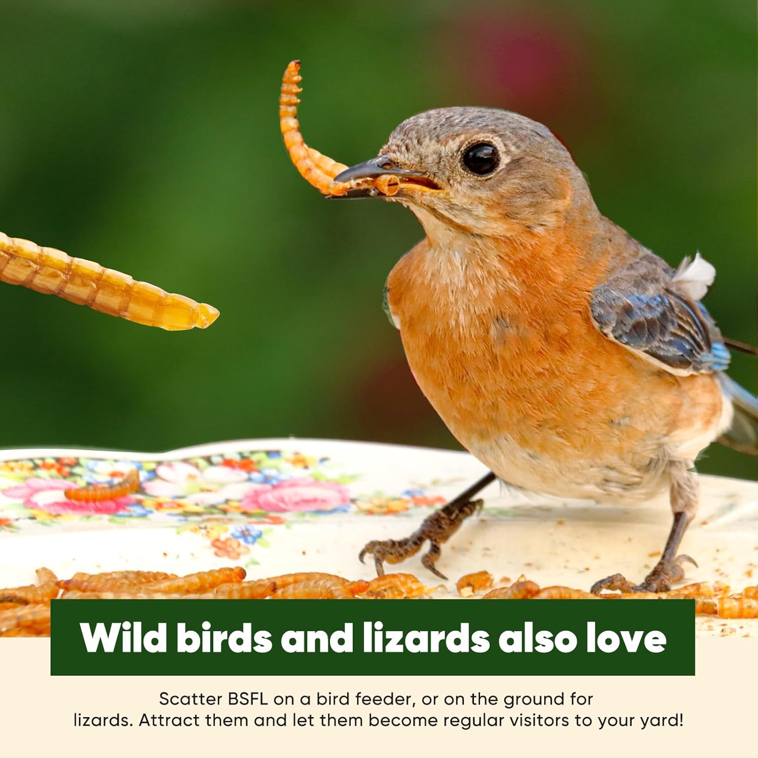- Convenient Package & Storage - The BSFL mealworms are packed by a sealed bag, so you can zip it up after wrapping it. A thick carton outside the bag so the BSFL meal worms wonβt be squeezed. After using, please just seal the bag and settle it in a dry place for 24 months validity.