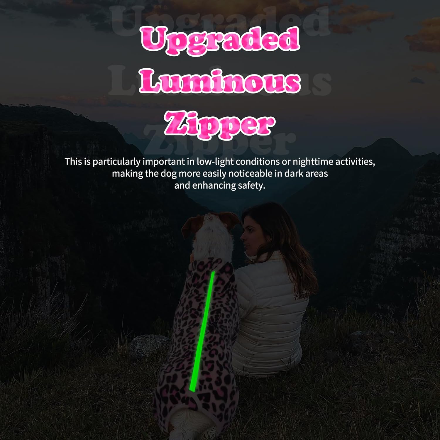 ROZKITCH Dog Winter Jumpsuit, Pet Windproof Warm Cold Weather Jacket Vest with Luminous Zipper, Jumpsuit Apparel Outfit Clothes for Large Giant Dog L-Pink 4XL