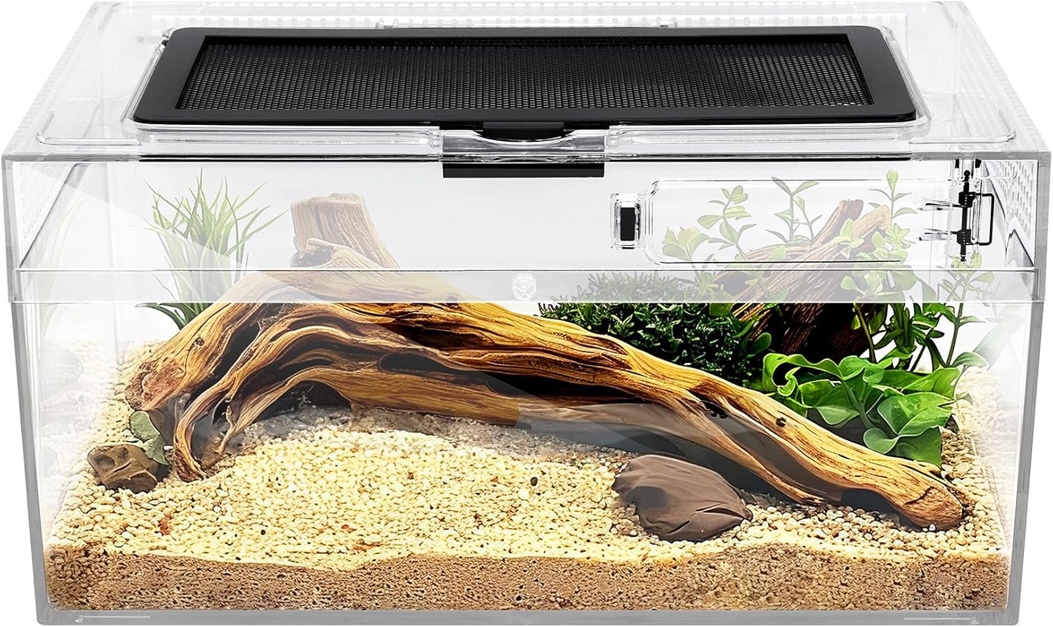 - 360° FULL VIEWING EXPERIENCE: Made of high-transparency PC material, this vivarium tank ensures a panoramic view of your reptile's world. Enhance your observation with an enclosure that brings the captivating reptilian habitat closer to you