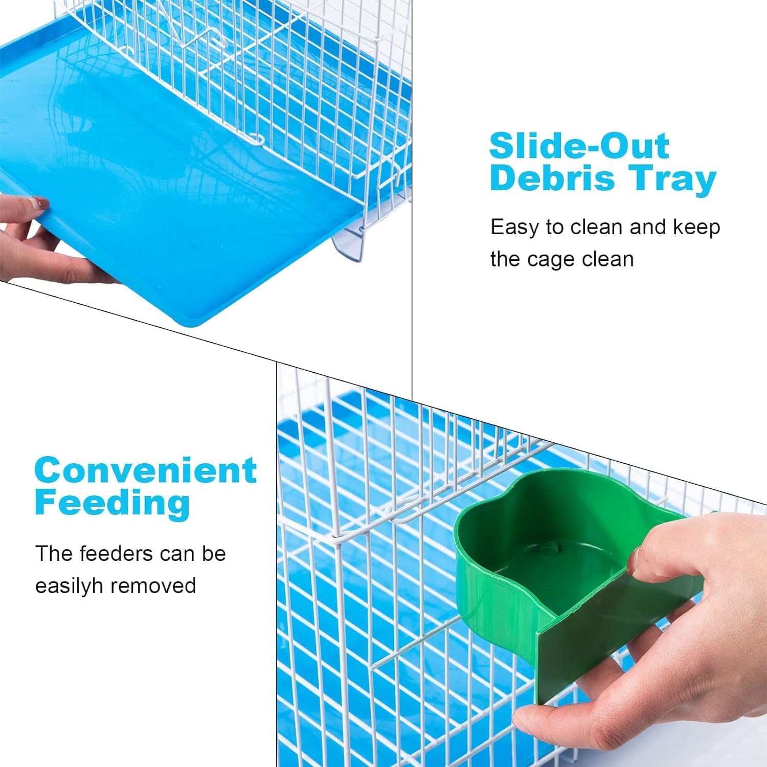 - EASY TO CLEAN : A slide-out tray covered can be removed and cleaned with water, making cleaning a breeze.Hanging bird cage comes with metal hooks, it can hang bird cages on trees, under eaves, on ropes, etc