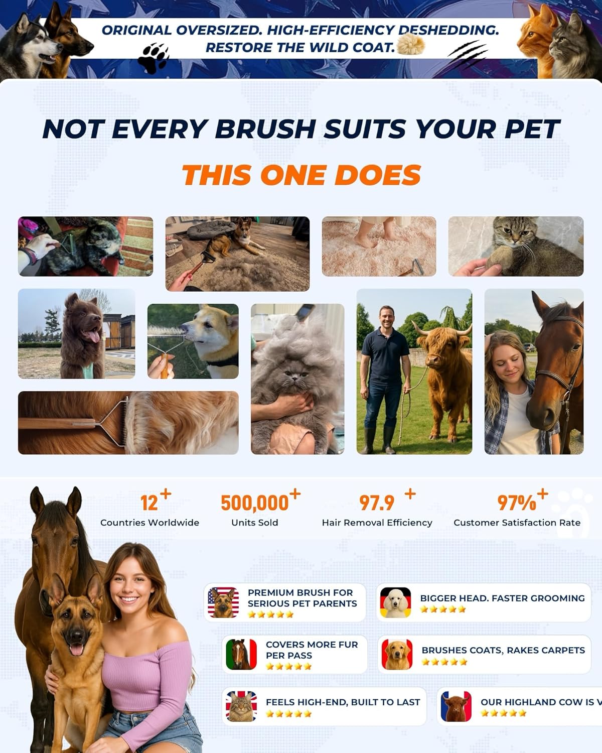 - ☀️【Reduce Shedding Significantly】KIZO ESLO️ double-sided shedding tool quickly demat and detangle pet undercoat rake and effectively reduces shedding by up to 97.9%, keeping your home cleaner and your pet's coat in excellent condition. Perfect for use during shedding season.