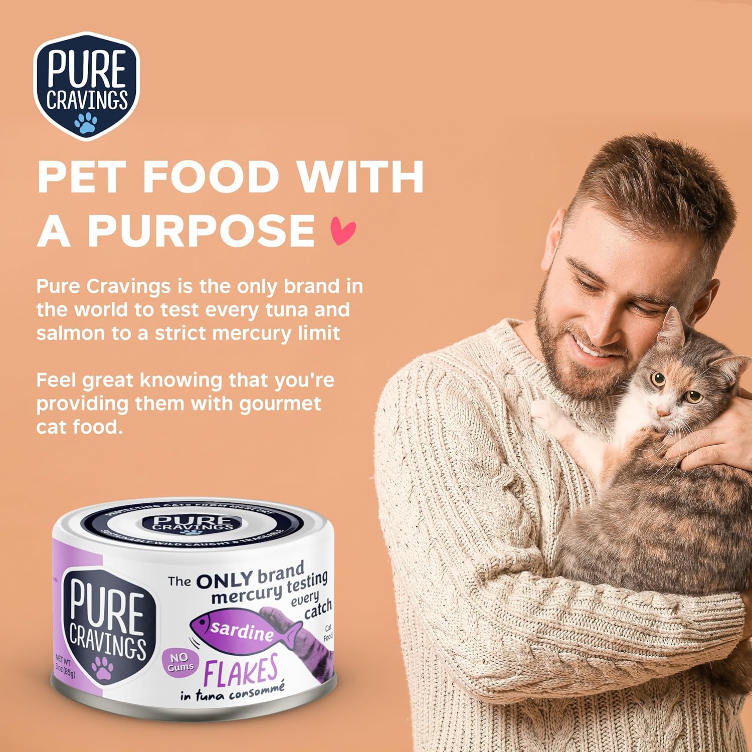 Sardine Flakes in Tuna Consommé, Canned Wet Cat Food Soup, 100% Mercury-Tested, Moist Can Fish, Grain-Free Protein, Non-GMO, 3oz, Pack of 12