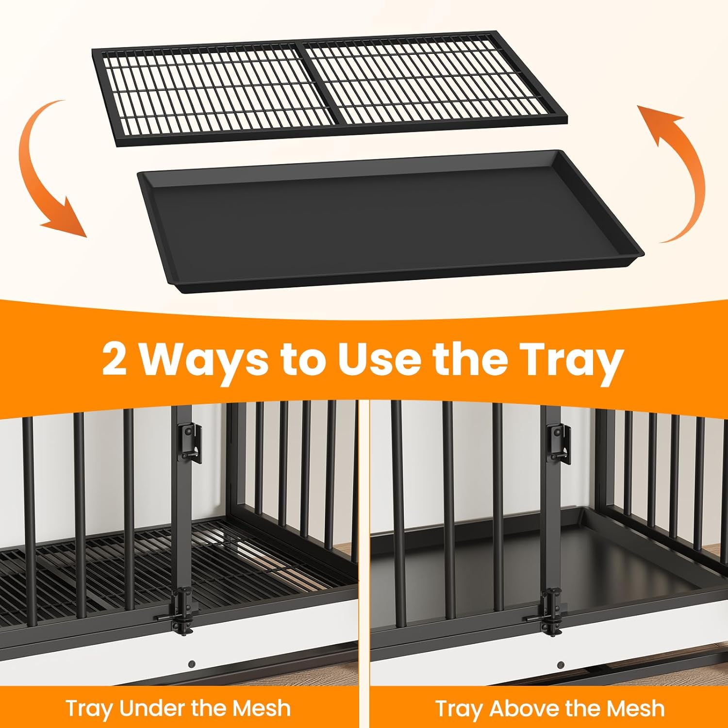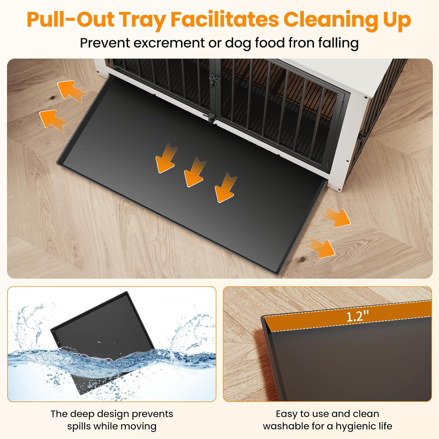 Dog Crate Furniture, Large Dog Crate Furniture, Wooden Cage Kennel Furniture Indoor, Modern Dog Crate with Multi-Purpose Removable Tray, Double-Doors Dog Furniture, End table dog crate, White