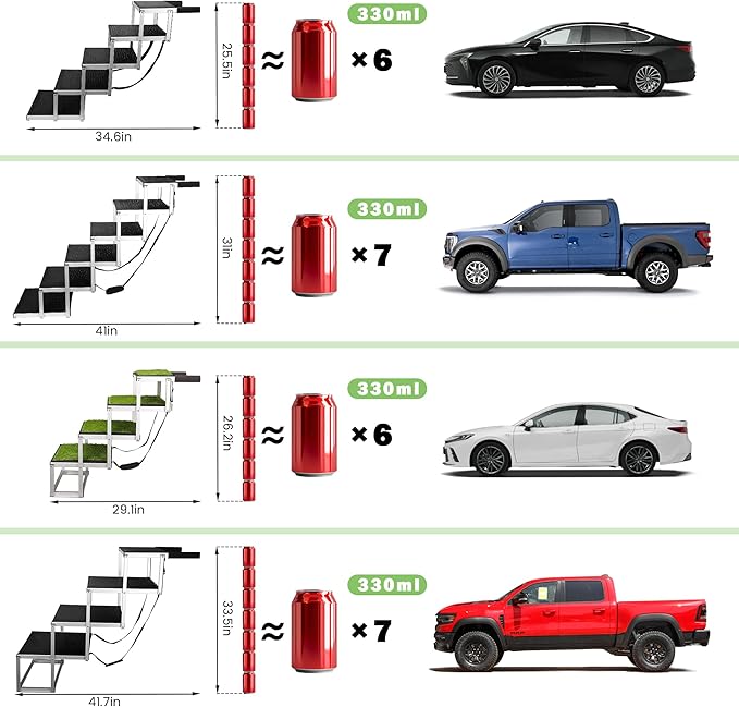 - Multi-Size Step Design: Choose between 5-step (98x67x43cm) and 6-step (106x80x43cm) configurations to best suit your pet's needs and vehicle height - perfect for small to large dogs with a weight capacity of up to 200 lbs.