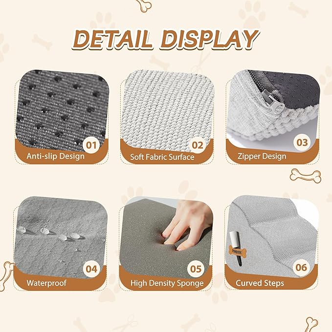 - 33D REBOUND HIGH-DENSITY FOAM: Our 33D foam delivers 63% faster rebound vs standard foam with enhanced weight capacity. Perfect for puppies, senior dogs, and pets recovering from surgery to access beds/couches safely. Dual-purpose as cat stairs for multi-pet households
