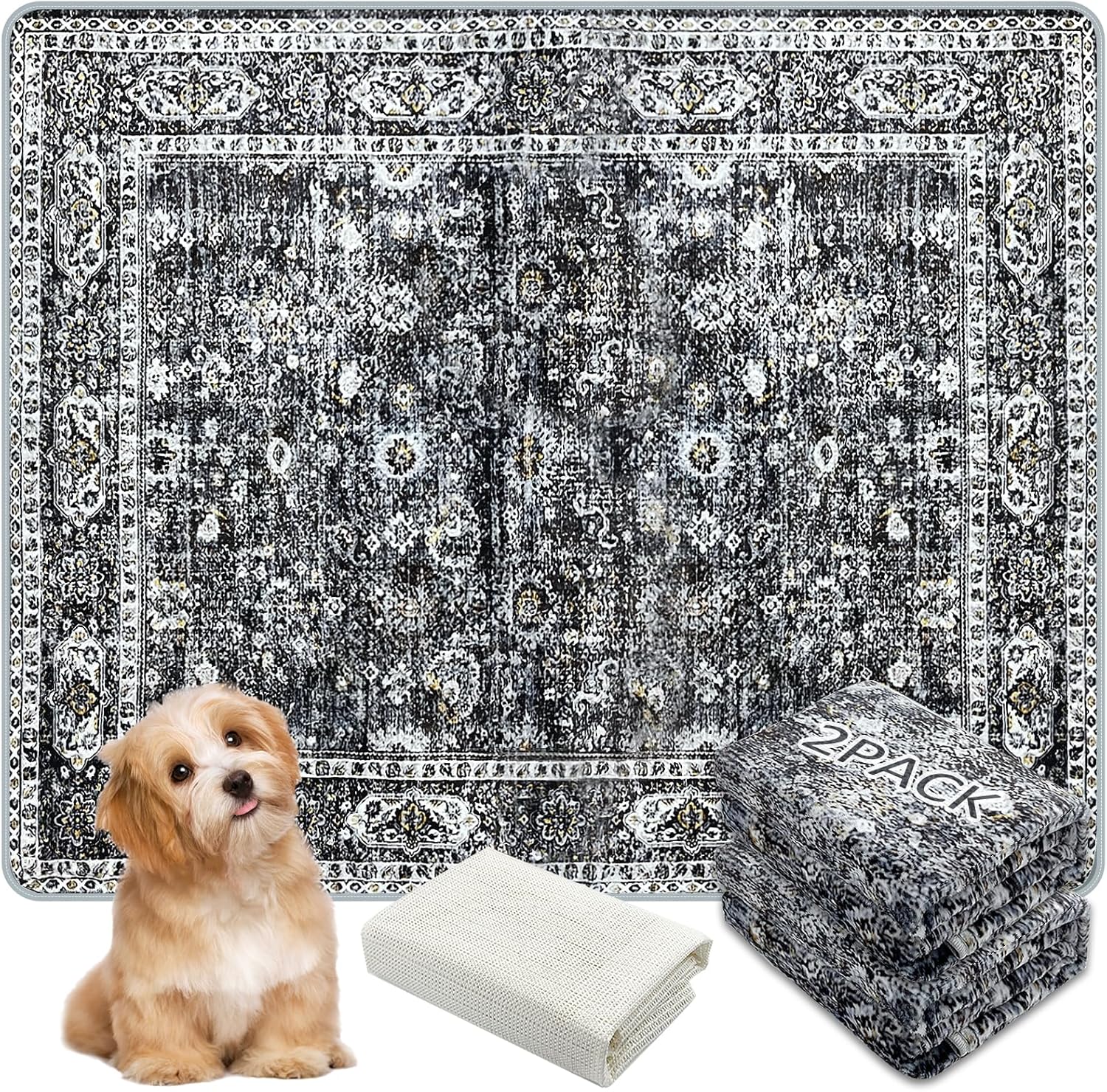 Washable Pee Pads for Dogs, (2 Pack, 36"x42") Upgrade Reusable Puppy Pads with Non-Slip Rug Pad, Super Thickening Absorbent Leakproof Dog Traning Pads Whelping Pad for Dogs, Doggie(Black)