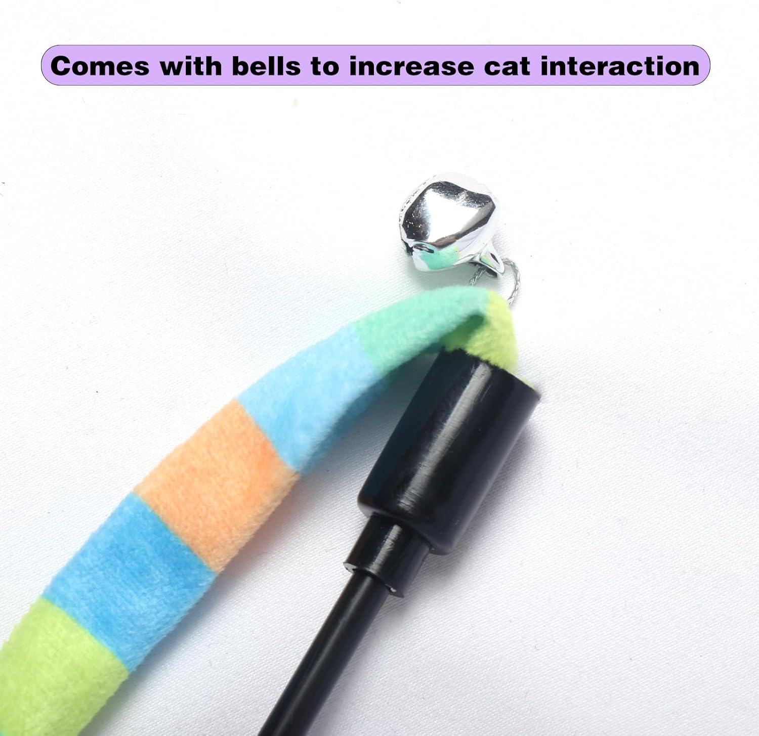 - Premium Quality Material:The cat ribbon wand toys for indoor cats are made of soft,colorful satin fabric and high-elastic wand, safe,100% non-toxic, durable Lightweight and easy to store; When not in use, wrap the cloth strip on the pole.