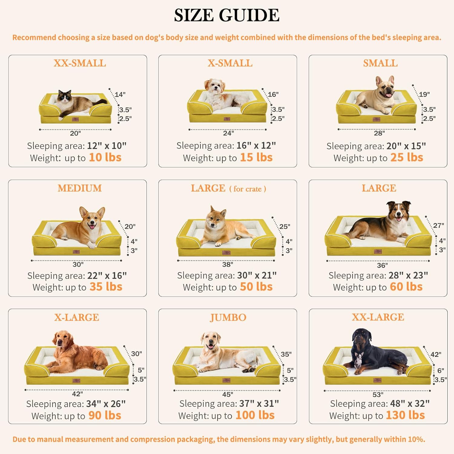 Comfort Expression Orthopedic XL Dog Beds, Waterproof Extra Large Dog Bed with Bolster, Washable Dogs Bed Sofa with Removable Cover & Non-Slip Bottom(X-Large,Spicy Mustard)