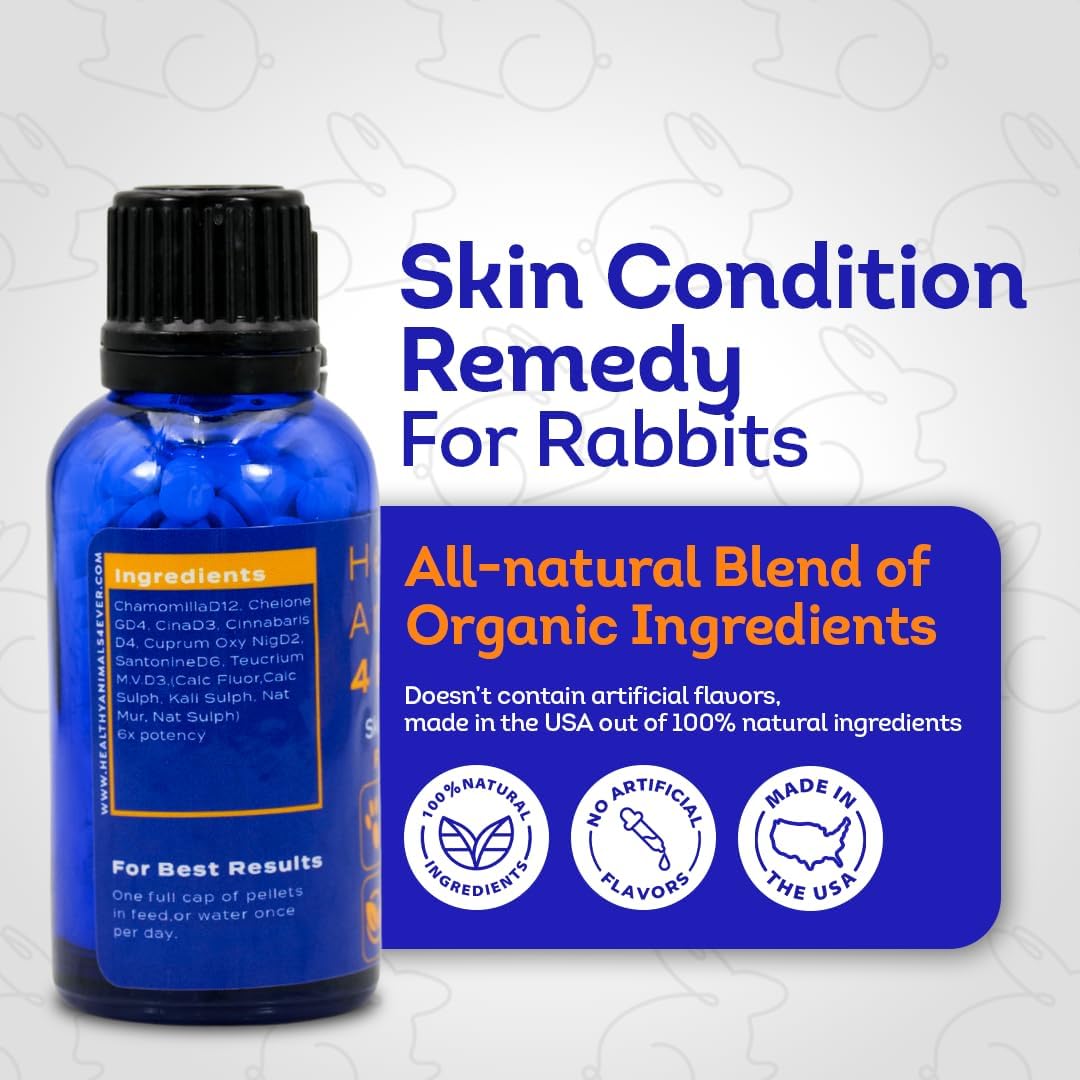 - TARGETED SKIN CONDITION SUPPORT: Formulated to provide comprehensive support for your rabbit's skin health, promoting relief from itching, redness, and discomfort caused by various skin conditions.