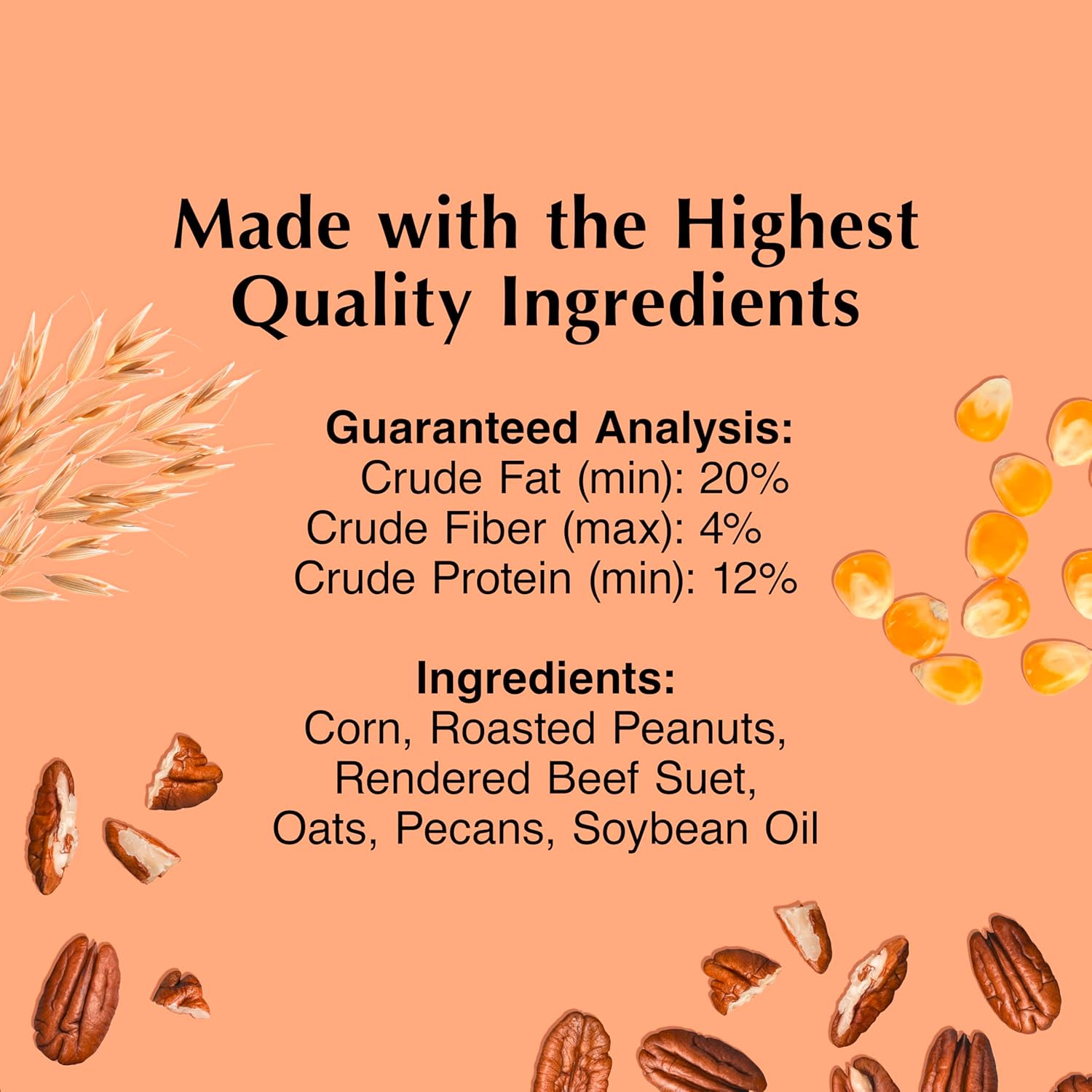 - IDEAL FOR YEAR-ROUND FEEDING, no melt suet is processed and formulated to have a higher melting point of up to 100ยบ F; This makes it a great suet for warmer weather