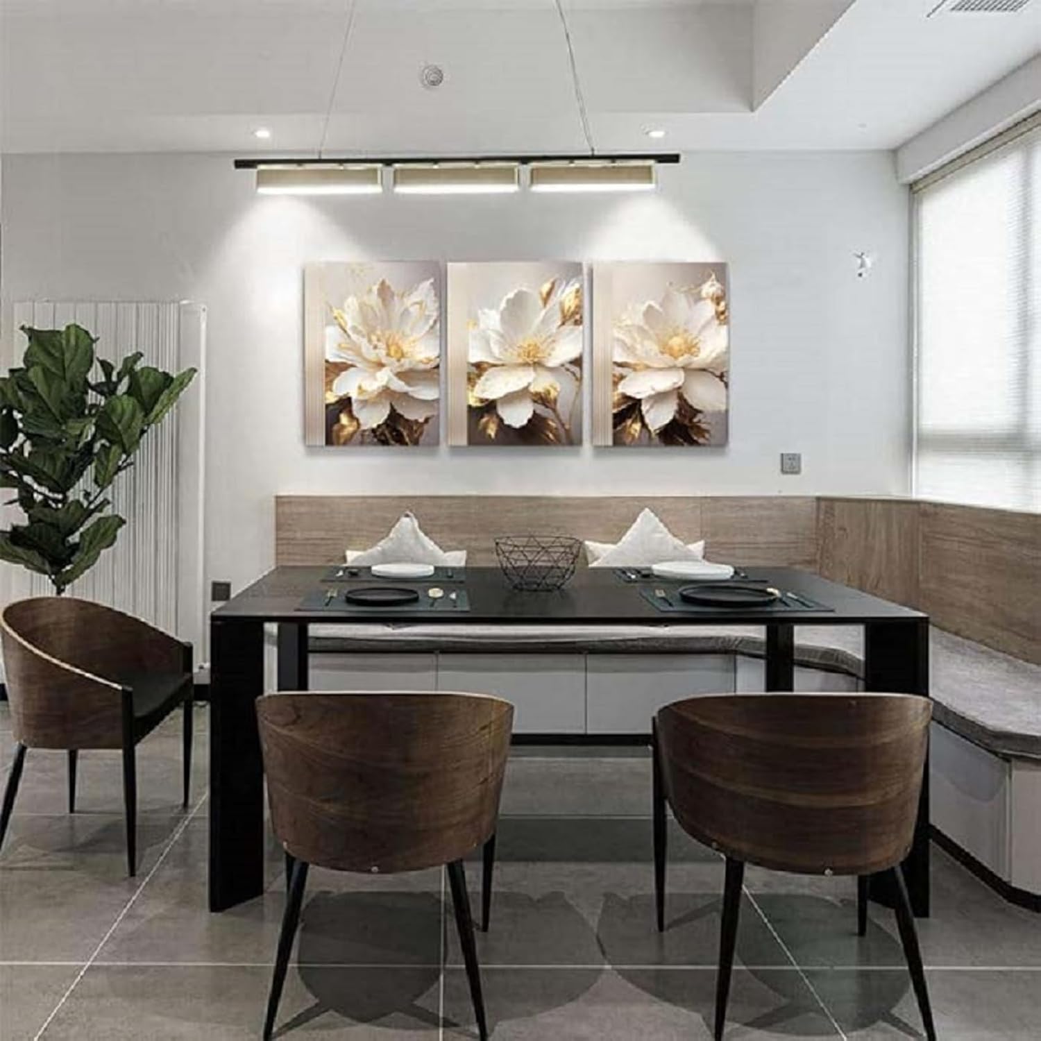 Yxbhhym Bathroom Wall Art White Flower Canvas Wall Art for Living Room Bedroom Wall Decor Floral Picture for Kitchen Hallway Home Decorations Framed Posters Prints 3 Piece