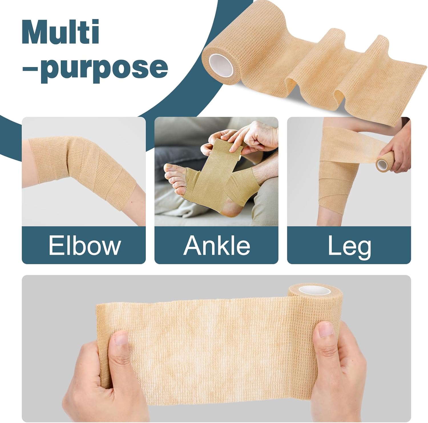 - Breathable & Highly Elastic Fabric: Self adhesive bandage wrap is made of special elastic lightweight compression bandage fabric, which is stretchy, breathable and skin-friendly