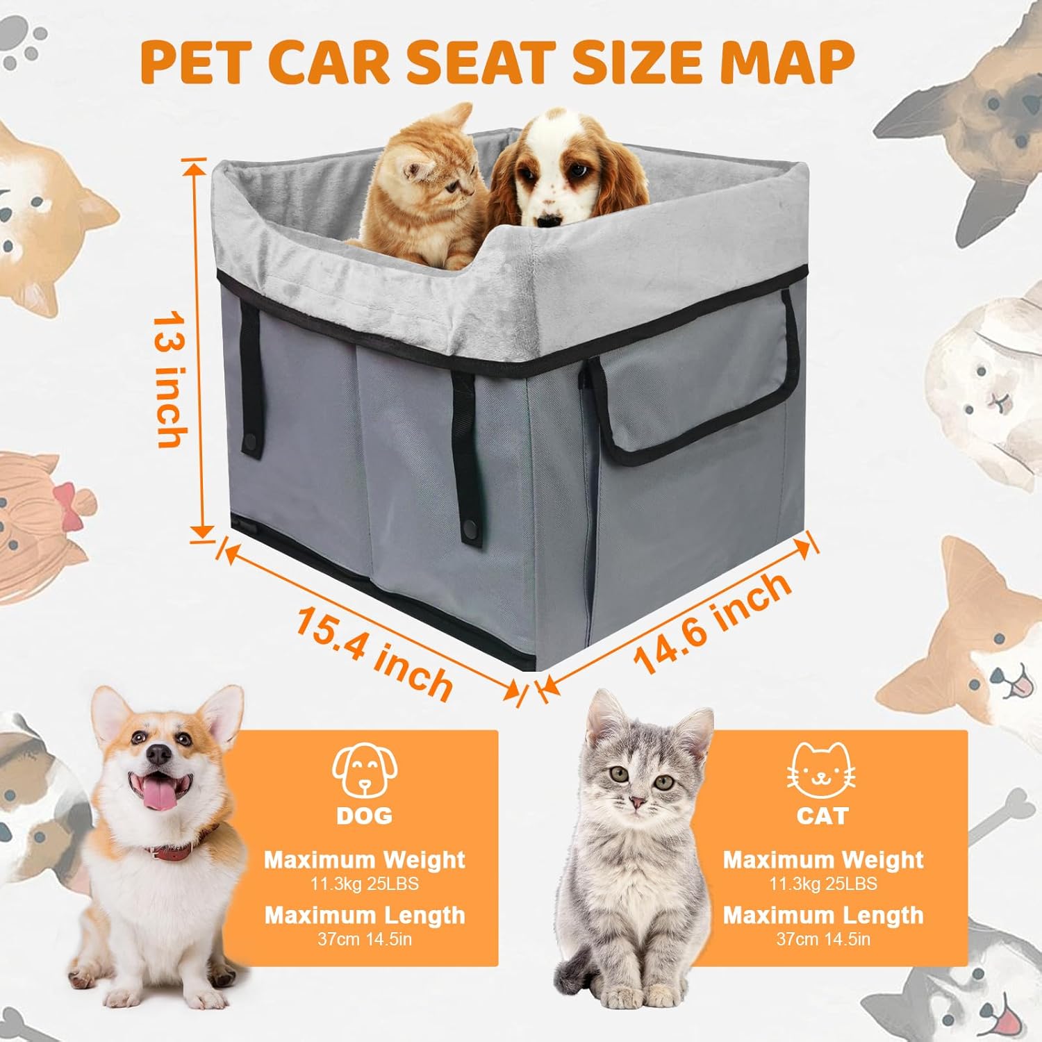 Eunice Small Dog Car Seat, 15.5 in (L) X 14.6 in (W) X 13 in (H) Washable Detachable and Portable Dog Booster Car Seat with Clip-on Safety Leash, Puppy Car Seats Storable Bottom Layer - Up to 25 lbs