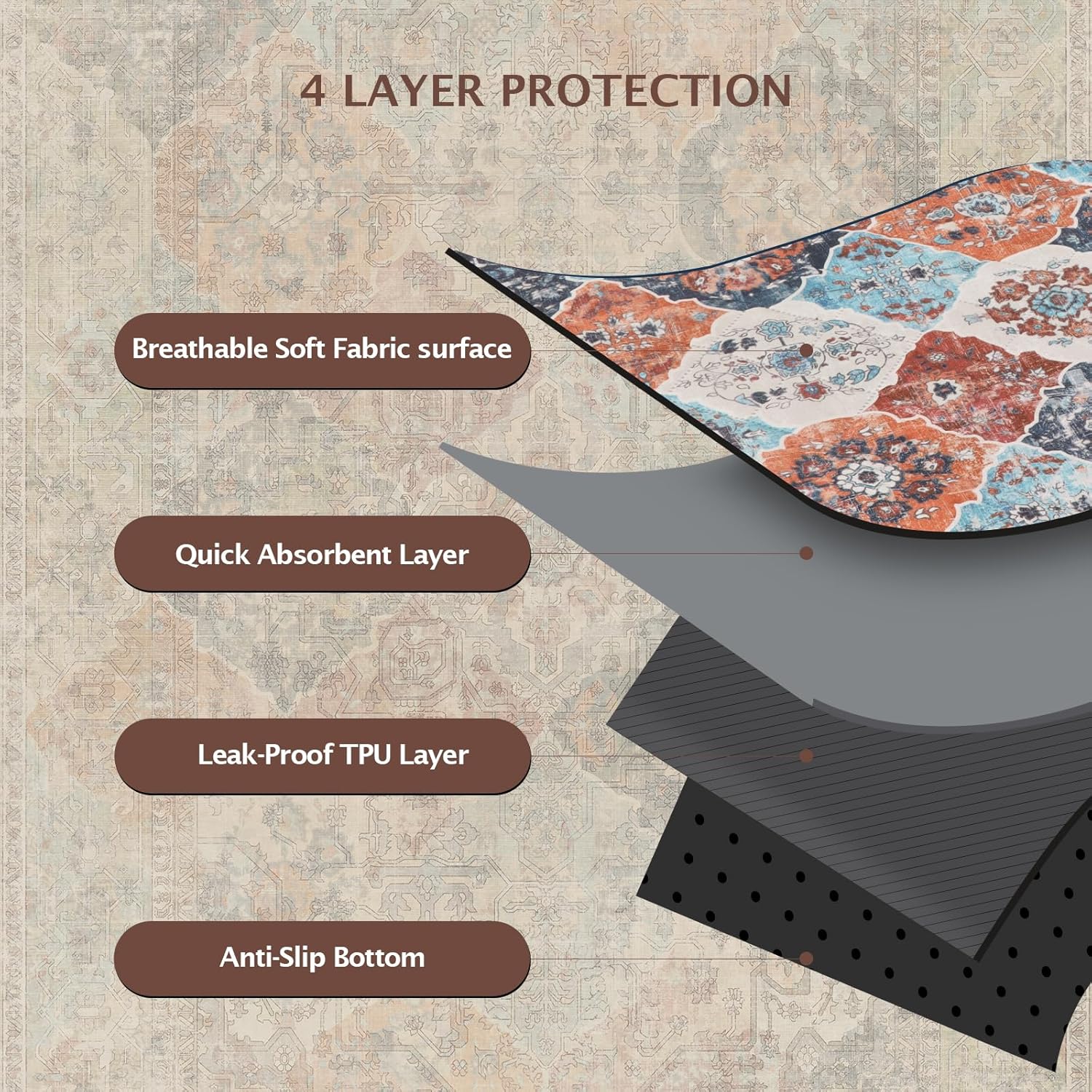 - 【Fashionable and Non-Slip】Our bohemian-print design adds a natural touch to the potty pads for dogs, giving your room a warm, casual vibe. And the non-slip bottom design makes the pet pee pads can achieve a certain fixed effect, you can put it anywhere you want. Soft and non-slip material makes it safer for dogs to use the pads.