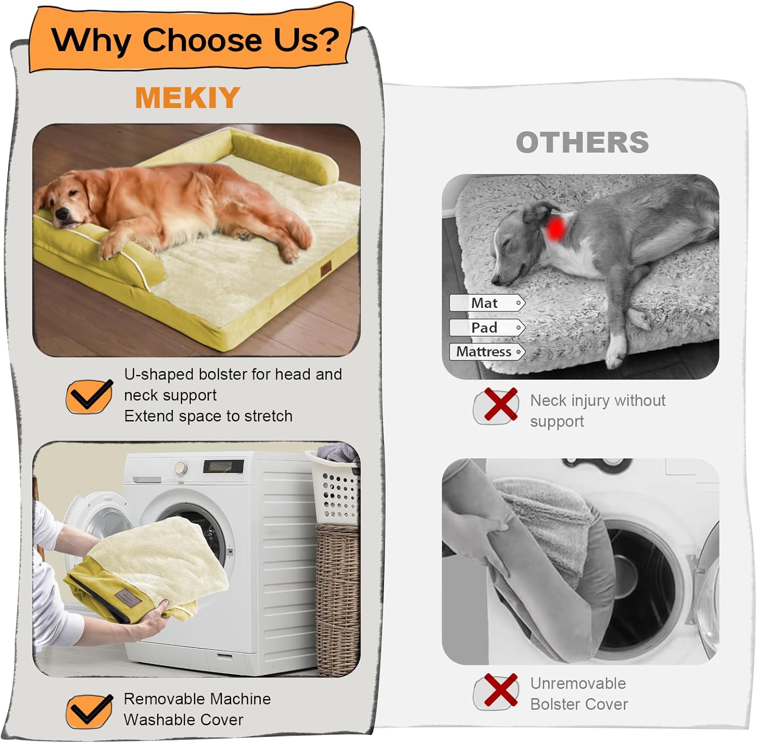 - 【U Shaped Bolster】 The Mekiy dog bed features a U shaped support structure that provides extra support for your dog's head and neck, helping them maintain a correct sleeping posture