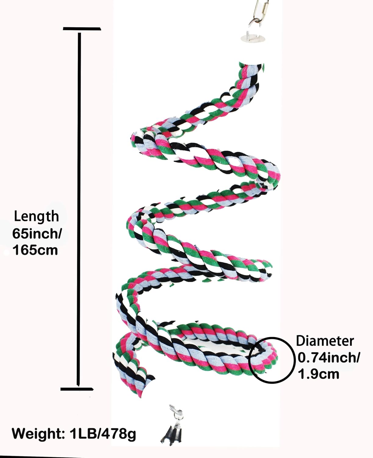 - š¦[WHAT YOU GET] 1pc 65 inch length soft cotton rope with metal bell,fully closed/open hook can hang in birdcage or outside safety,bendable internal steel wire can re-sharp it provide more fun for your pets