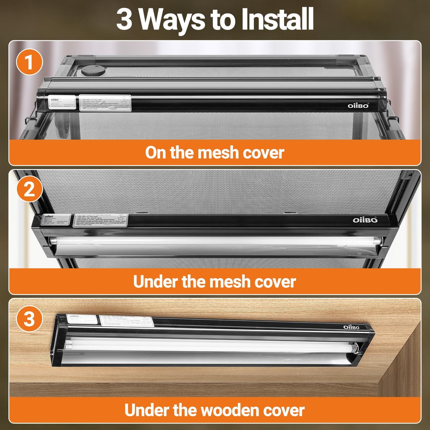 - 【Reptile Health】OiiBO 39-Watt T5 HO Terrarium Hood for Reptiles with 10.0 UVB UVA Lamp provides essential UVB and UVA rays that simulate the UVB spectrum of sunlight, aiding reptiles in synthesizing vitamin D3, promoting healthy bone development, enhancing immunity, and preventing diseases. UVA rays stimulate reptiles' appetite and help meet their daily needs.
