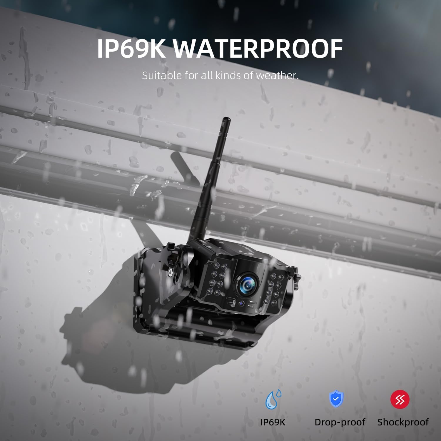 - IP69K Waterproof & Bad Weather Resistance: The RV backup camera is made of high-quality waterproof materials and nano-coating sealing technology. It enables it to work in extremely bad weather with temperatures ranging from -6°F to 151°F