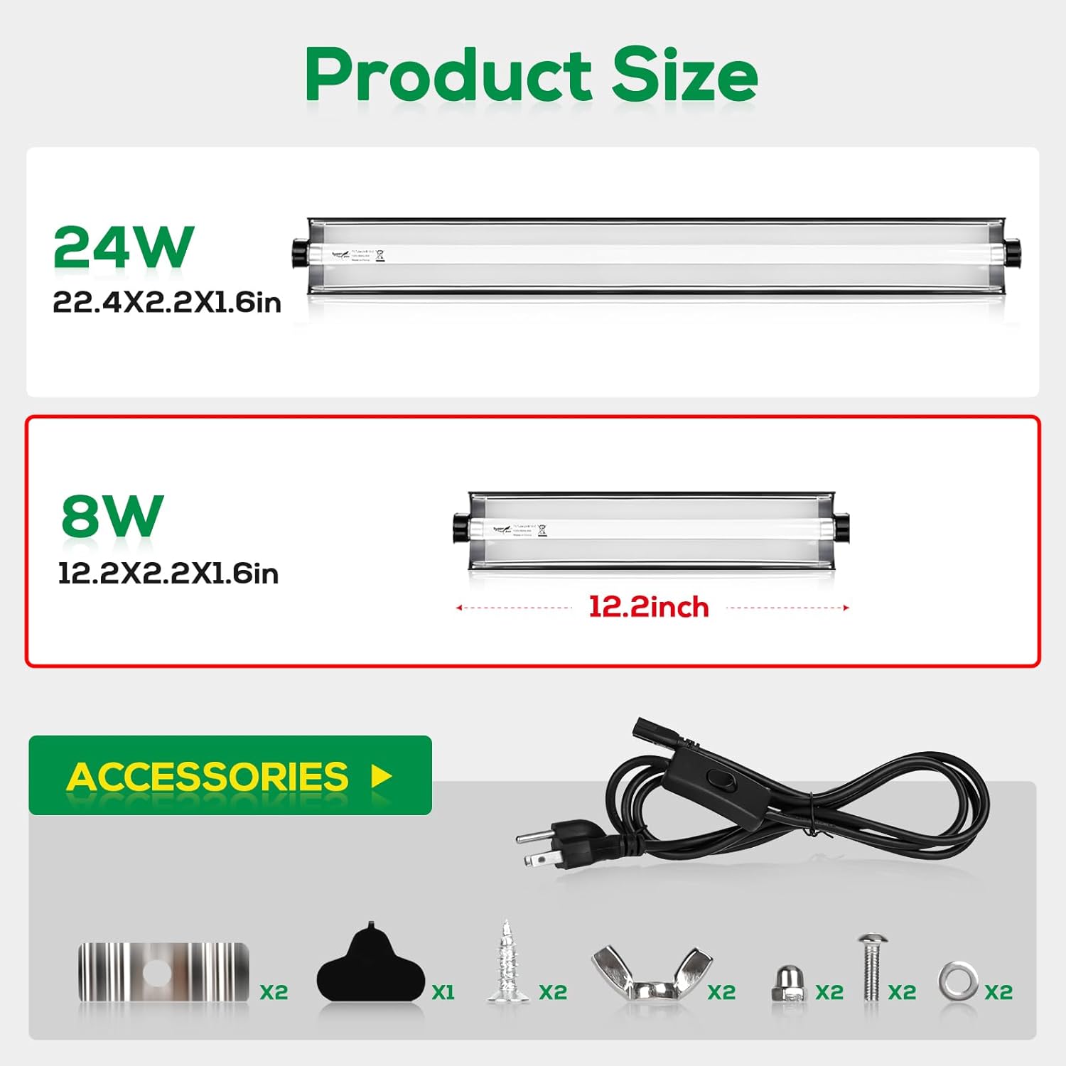 T5 Reptile Light Fixture Combo Kit 8W Light Fixture Reptile Terrarium Hood 10.0 UVB Light Bulb Fluorescent Tube Ideal for Tropical and Deserts Such as Bearded Dragon Lizards and Tortoises
