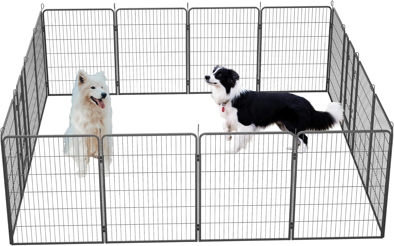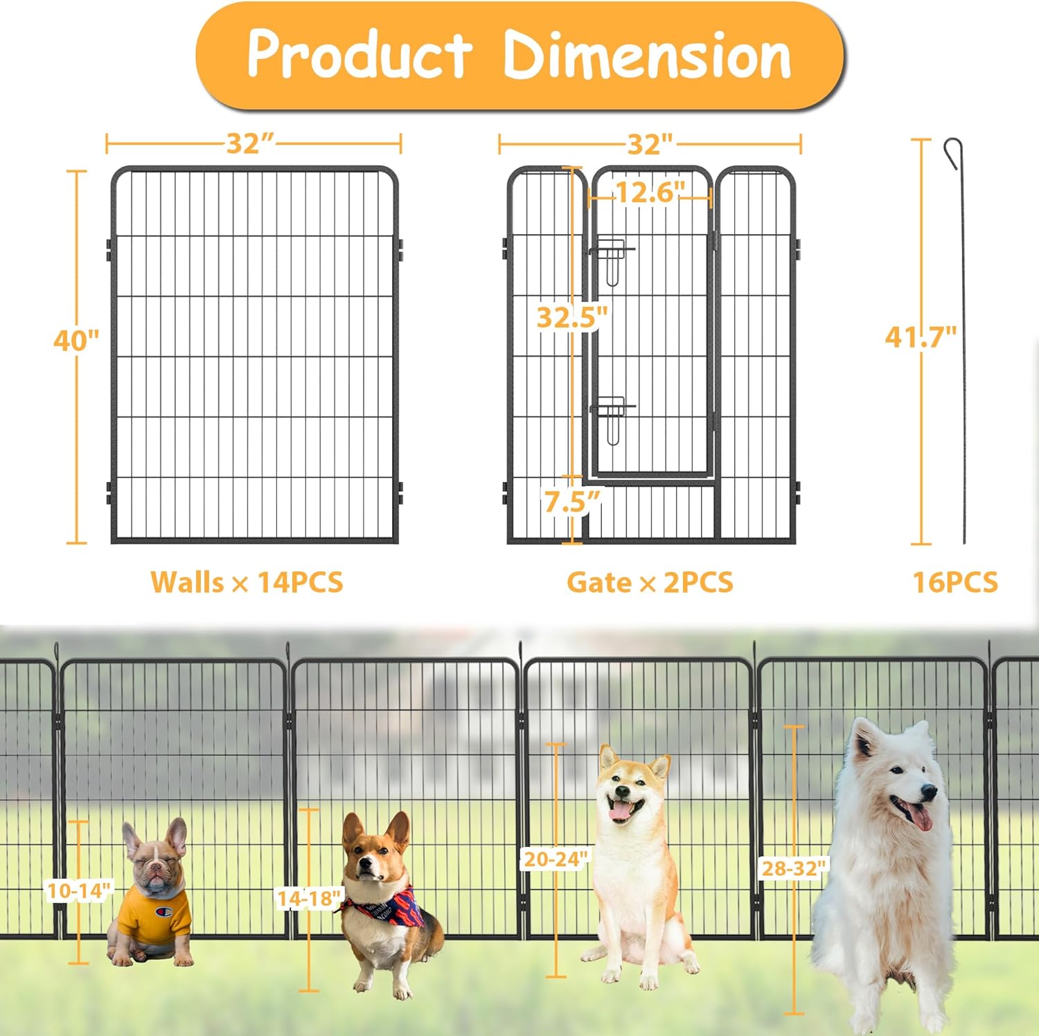 - ๐ถ๐ฉ๐ฒ๐ฟ๐๐ฎ๐๐ถ๐น๐ฒ ๐ฆ๐ต๐ฎ๐ฝ๐ฒ ๐ข๐ฝ๐๐ถ๐ผ๐ป๐:Our outdoor dog fence panels are 32'' wide and 40'' high, including 14 panels and 2 gates, allowing you to set it up in various shapes like circles or rectangles to suit your space and your pet's needs. This tall dog playpen is ideal for small, medium, and large animals, and the 40'' height ensures their safety