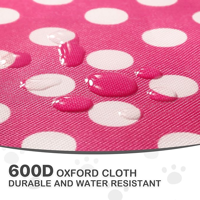 MoNiBloom 4 Wheels Pet Stroller, Easy-Fold Umbrella Shaped Dog Cat Jogger Stroller w/Storage Bag & Visible Mesh for Small/Medium Dogs Cats Hot Pink Polka Dots