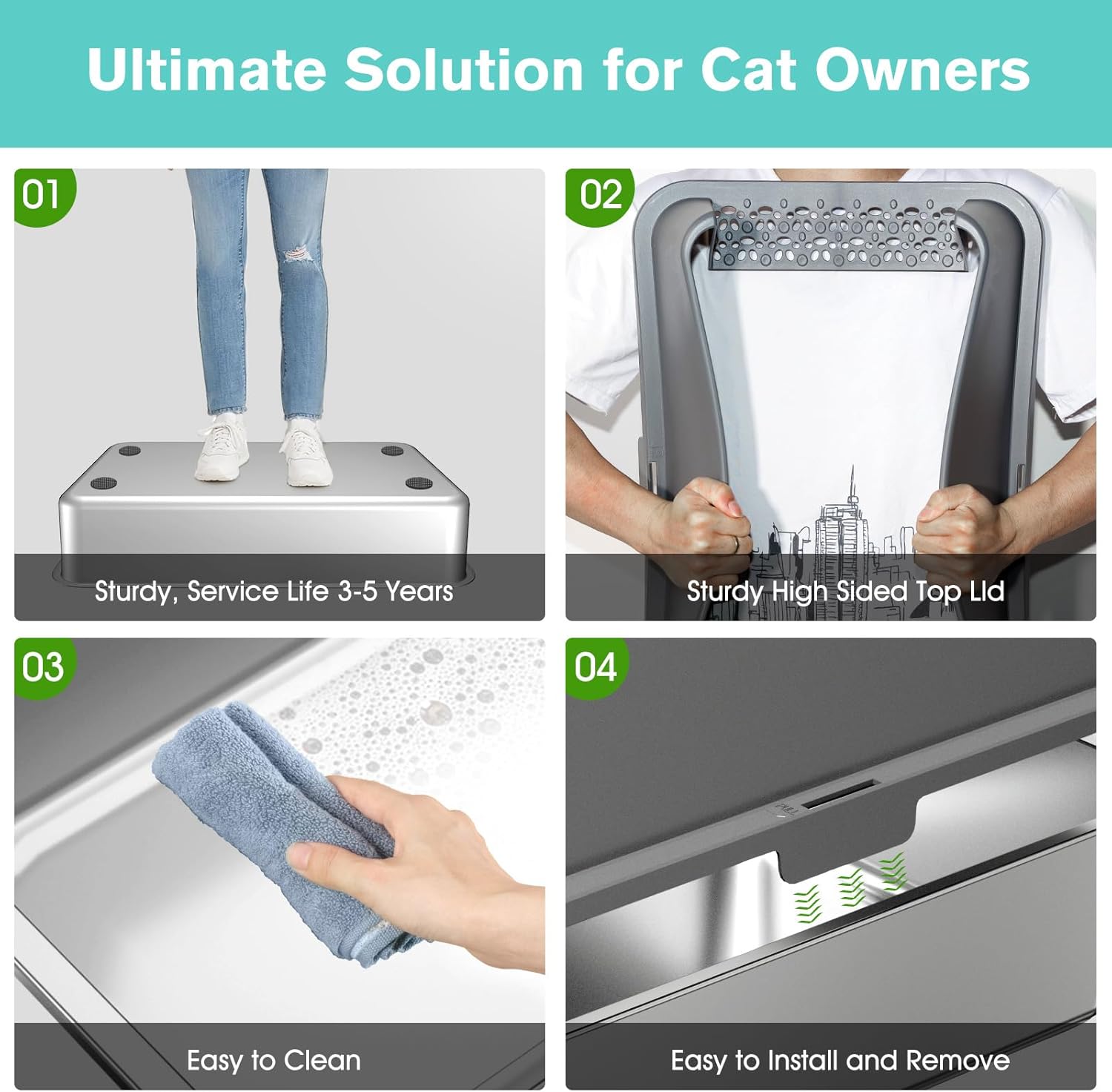 - 【Non Sticky, Odor Free Steel Cat Litter Box】: Unlike plastic alternatives, the stainless steel material does not absorb stains or odors.Its smooth, non-sticky bottom makes it very easy to clean, and these make it easy for you to maintain a fresh and clean environment for your beloved cat kitty. This feature alone makes it a standout choice for cat owner who prioritize cleanliness like you.