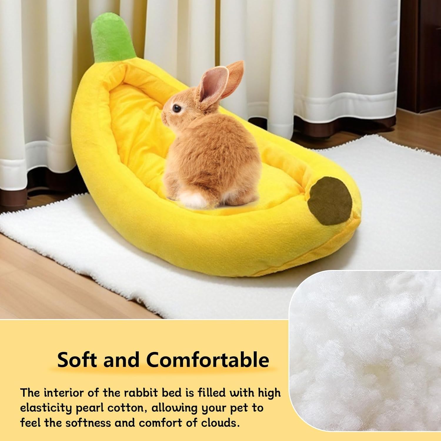 - š[Cartoon Design] Banana shaped small animal bed is cute and vivid, brighten up your home space and touch your heart with your beloved pet. This pet bed is not only suitable for rabbits, but also ideal for guinea pigs, chinchillas and other small pets. You can place it in the cage, on the floor, on the sofa or any indoor space to create a cozy resting place for your pet.