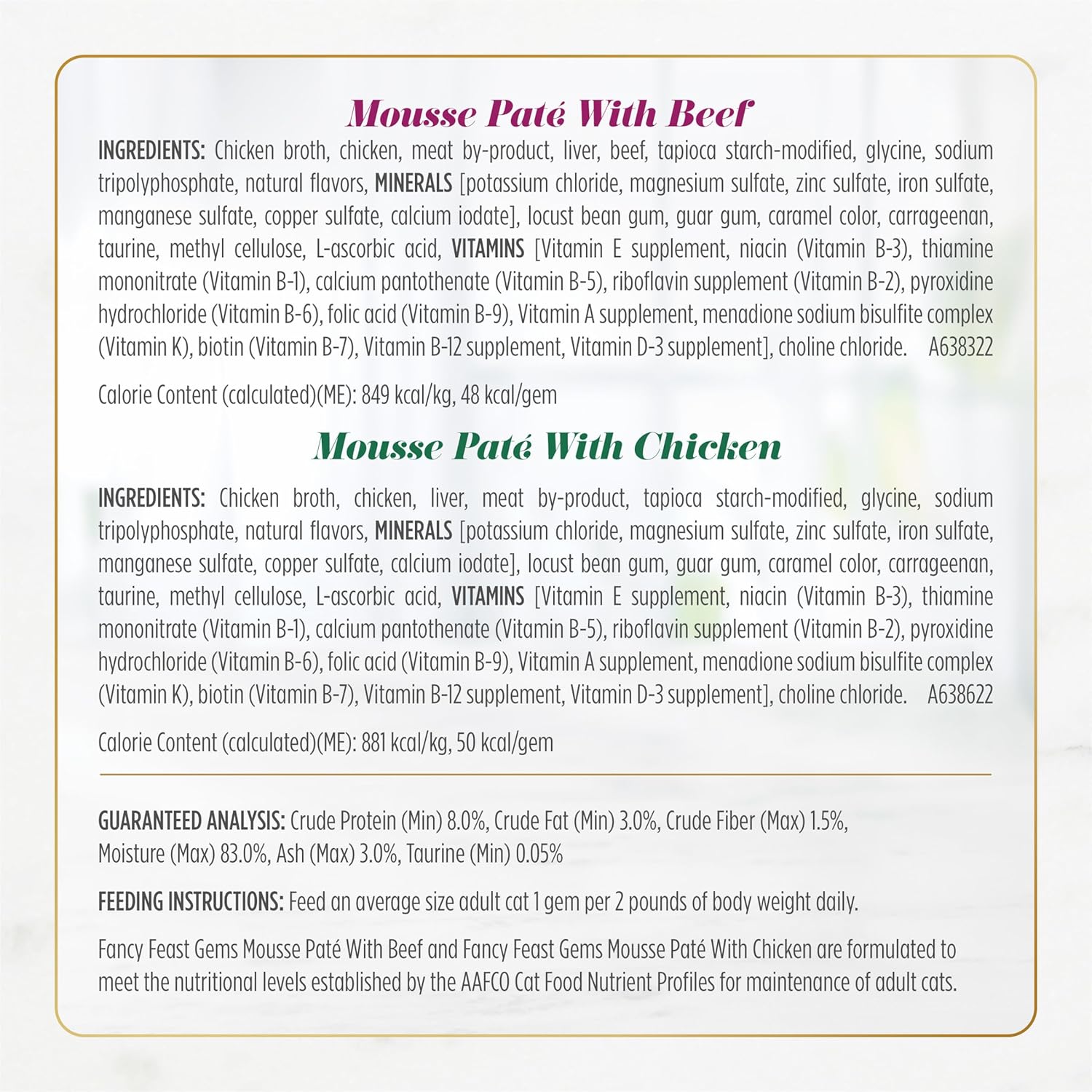 - Cuisine Like You’ve Never Seen: This Fancy Feast Gems mousse cat food pate is crowned with savory gravy for layers of delight.