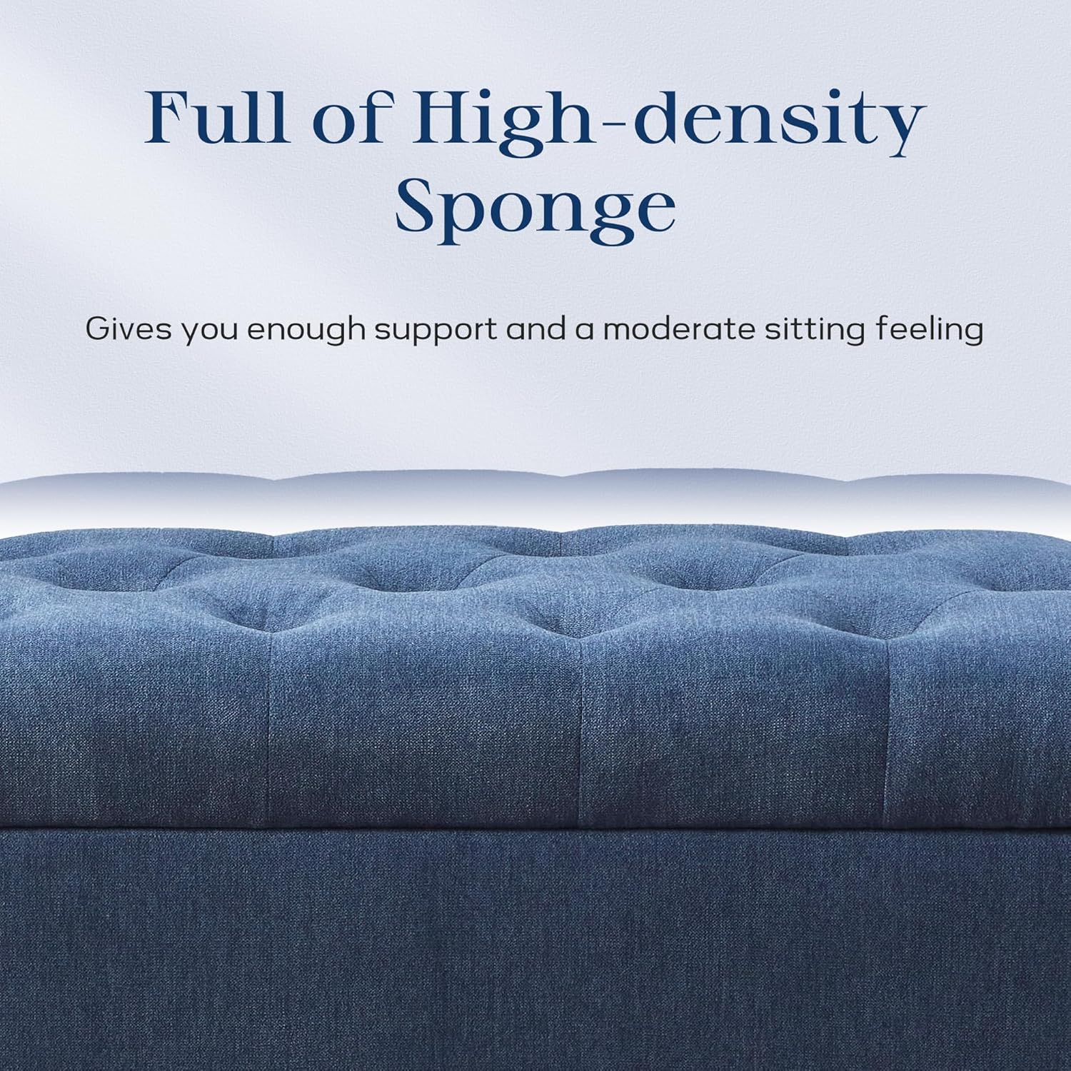 Ottoman with Storage, 48.8" Fabric Storage Ottoman Bench with Hinge, Bedroom Bench, Upholstered Benches with Seating for Living Room, Entryway (Dark Blue)