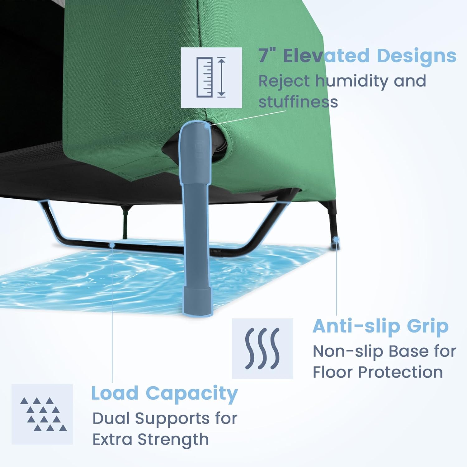 42" 2-in-1 Dog House for Medium Dogs, Elevted Dog House Outdoor/Indoor, Puppy Shelter Outside,Water Resistant 600D PVC and Durable 2x1 Textilene Raised Dog Bed(Green)