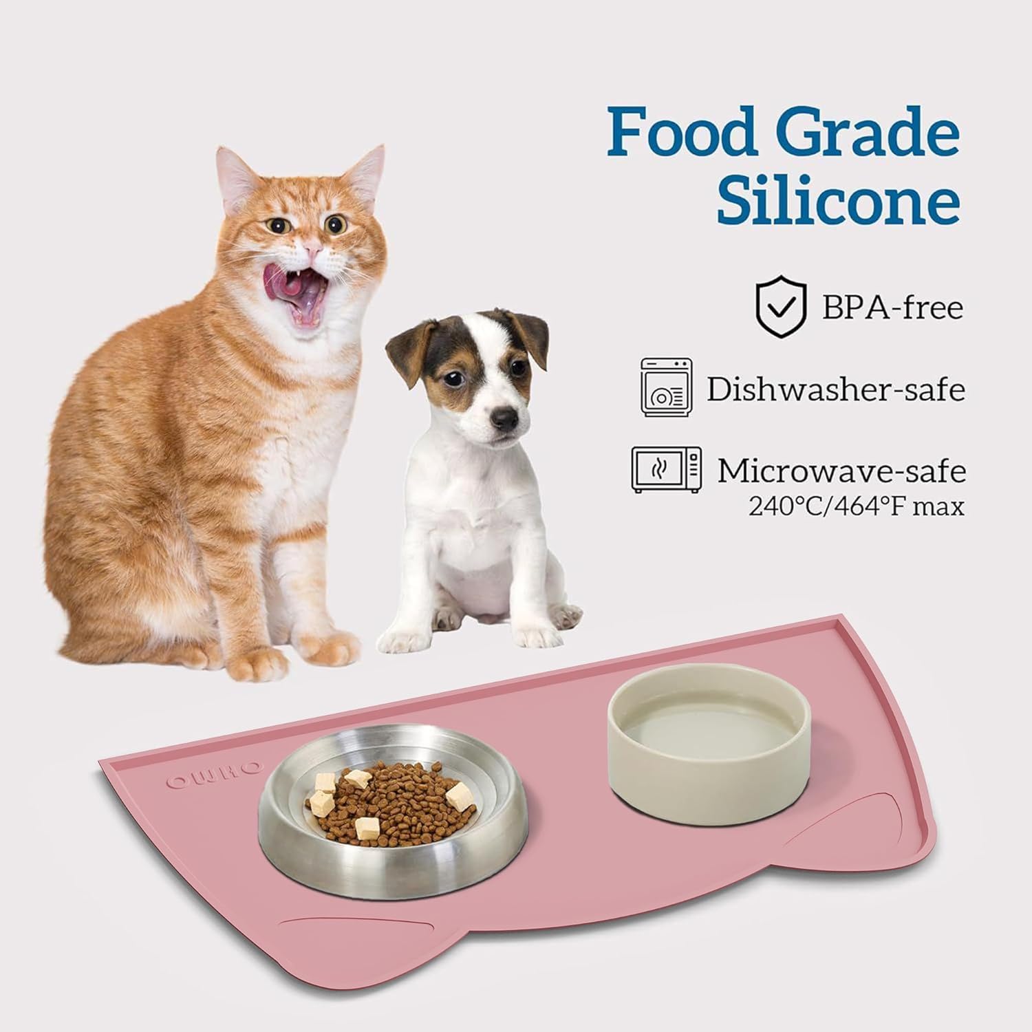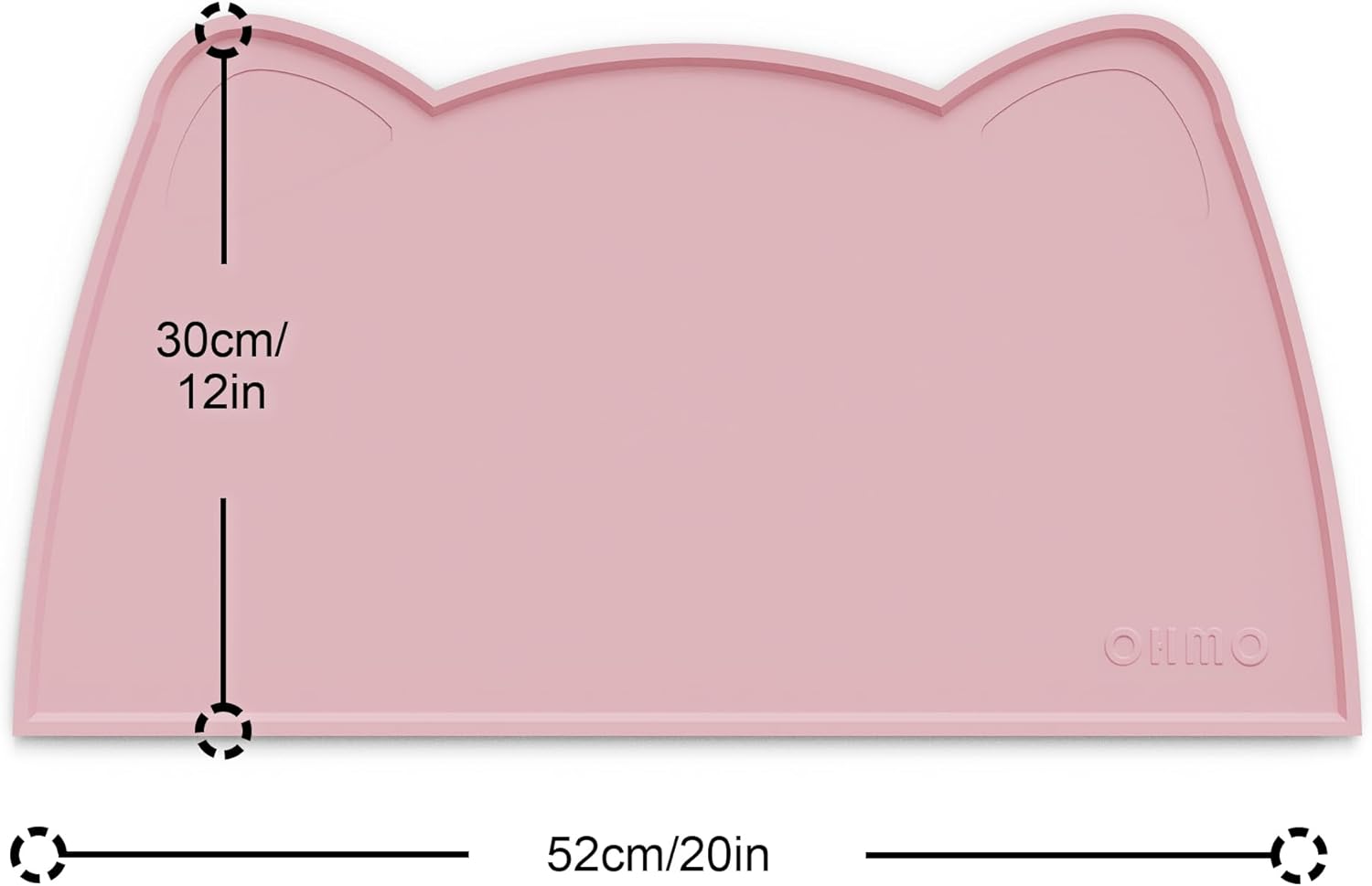 OHMO - Cat Food Mat, Silicone Pet Feeding Mat for Floor Non-Skid Waterproof Dog Water Bowl Tray, Easy to Clean Pet Placemat (Pink, 20 * 12'')