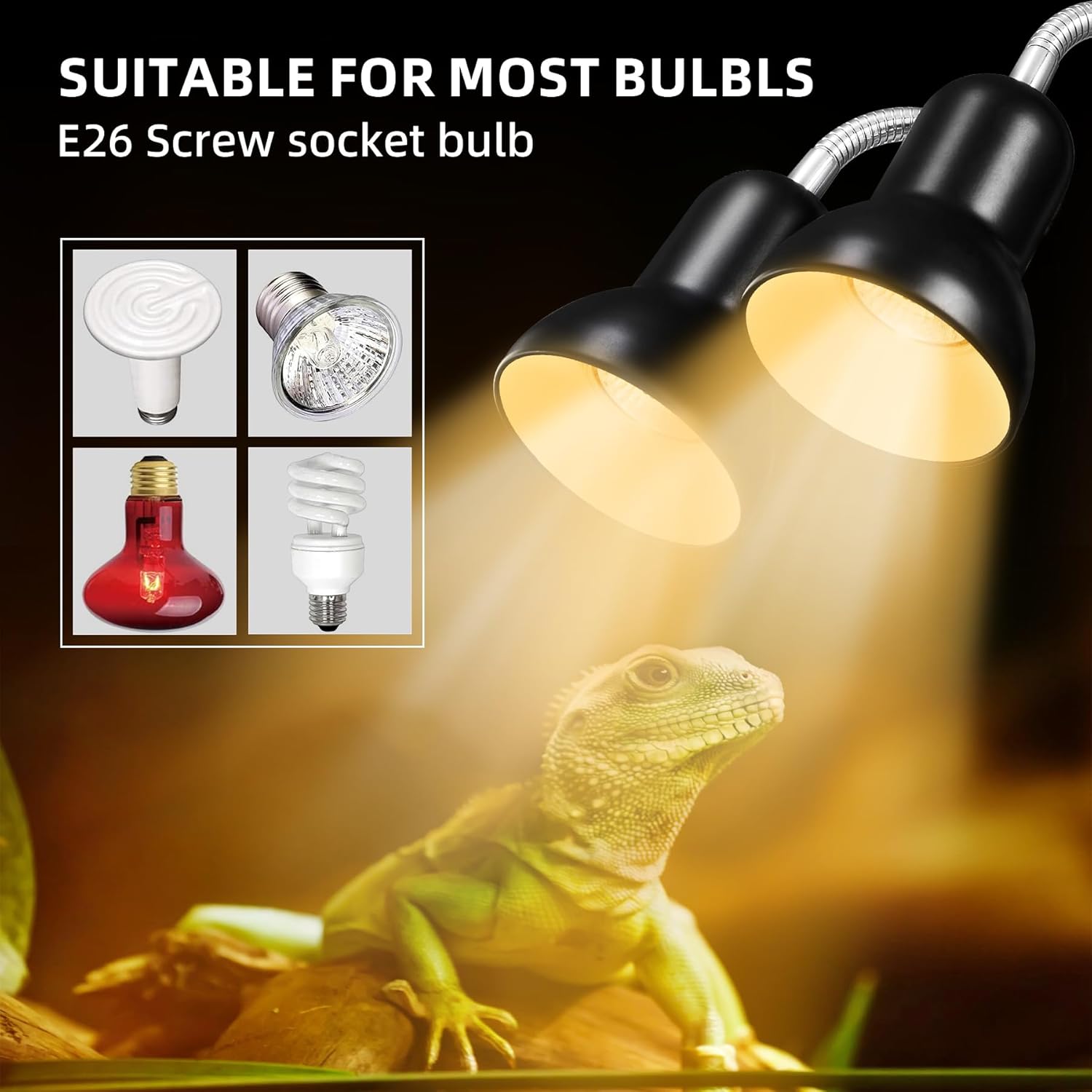 - Separate Control: Our Dual-Head reptile heat lamp features separate control options, allowing you to adjust the heat and light settings independently.