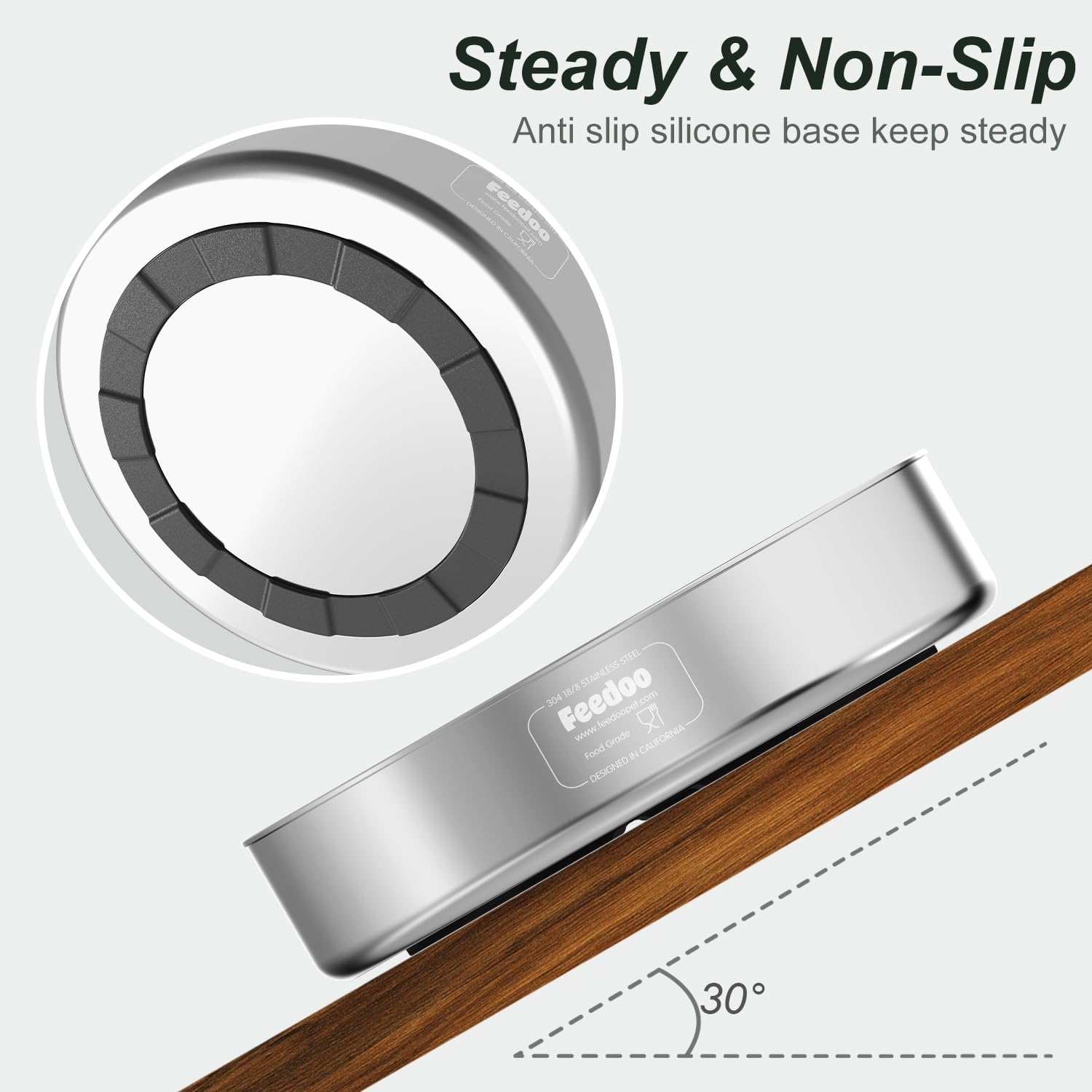 - HEAVY DUTY NON SLIP BASE: The Double-Wall stainless steel construction makes the bowl heavy and stable, and the non-slip rubber base prevents it from sliding around on the floor