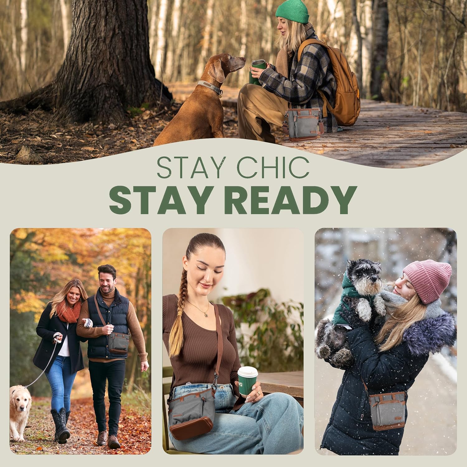 - 【ALL-IN-ONE STORAGE】 - With ample space and an expandable pocket, this dog walking bag holds treats, training tools, and poop bag rolls, easily holding your phone, keys, wallet, tennis ball, and documents, making it a great companion for long walks or outdoor adventures.