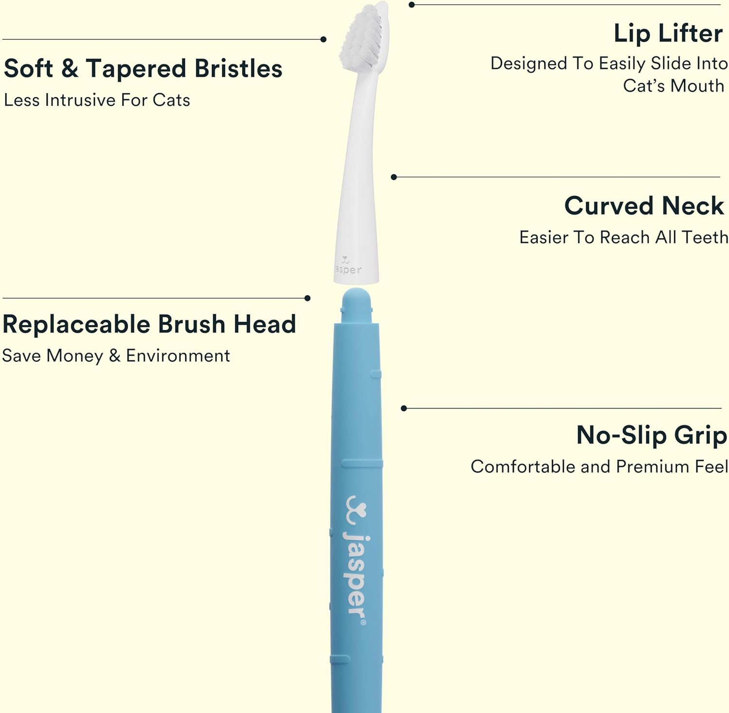 Jasper Microbrush Cat Toothbrush, Soft-Bristled Toothbrush Kit for Felines & Small Dogs, Premium Non-Slip Handle with 2 Replaceable Tooth Brush Heads, Use with Cat Toothpaste