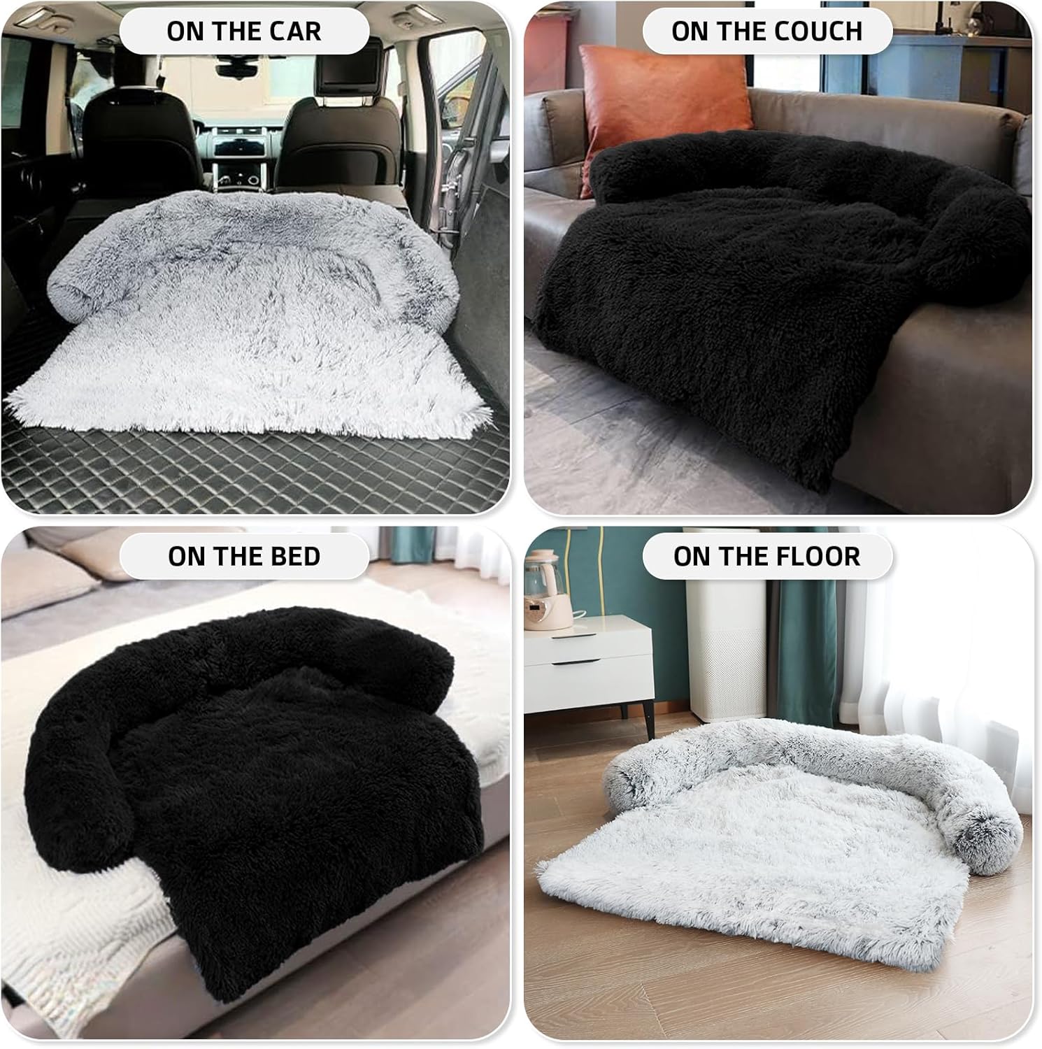 GGIB Calming Dog Bed Fluffy Plush Dog Mat for Furniture Protector with Removable Washable Cover for Large Medium Small Dogs and Cats (Large, Black)