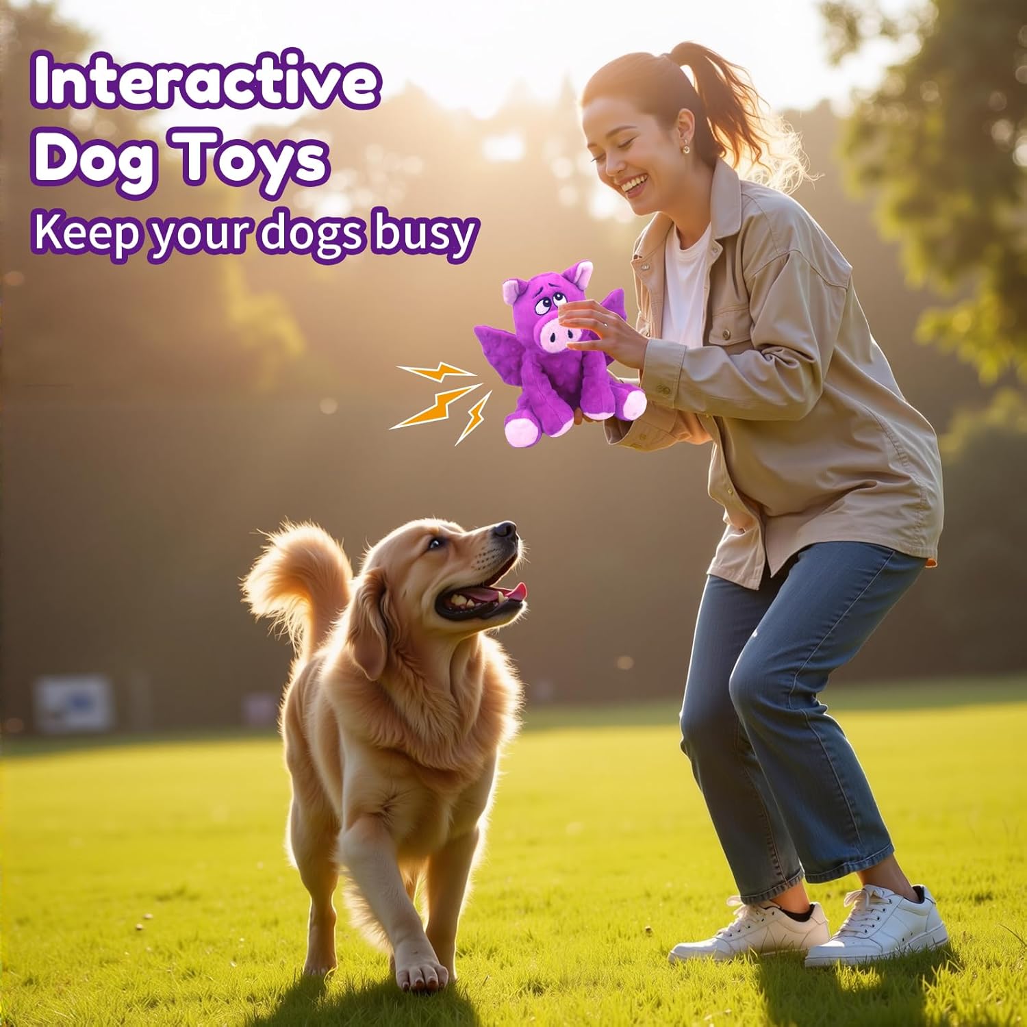 - Squeaky Dog Toys: This plush dog toys comes with a funny squeaker in the pig's body and crinkly crinkle paper in the ears and wings. The squeaky sound offers interactive fun and the rustling sound makes dogs more excited while playing. The squeaky toys stimulate curiosity and engage your dog in playful activities, keeping them entertained and mentally stimulated. It also with avoid destructive chewing and barking. The squeaky noise will pique your dog's interest and attract their attention. Dog squeaky toys also help to relieve stress and anxiety, promote healthier and happier emotions